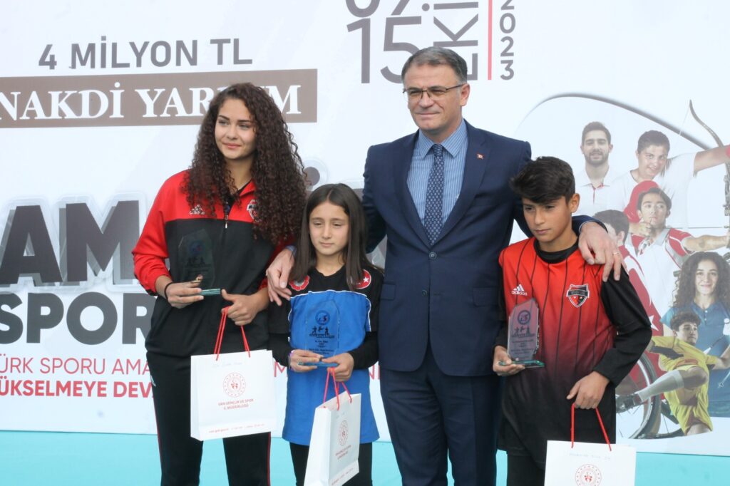 Program, çeşitli dallarda dereceye giren sporculara plaket ve amatör spor kulüplerine 4 milyon TL’lik çekin takdimiyle son buldu.