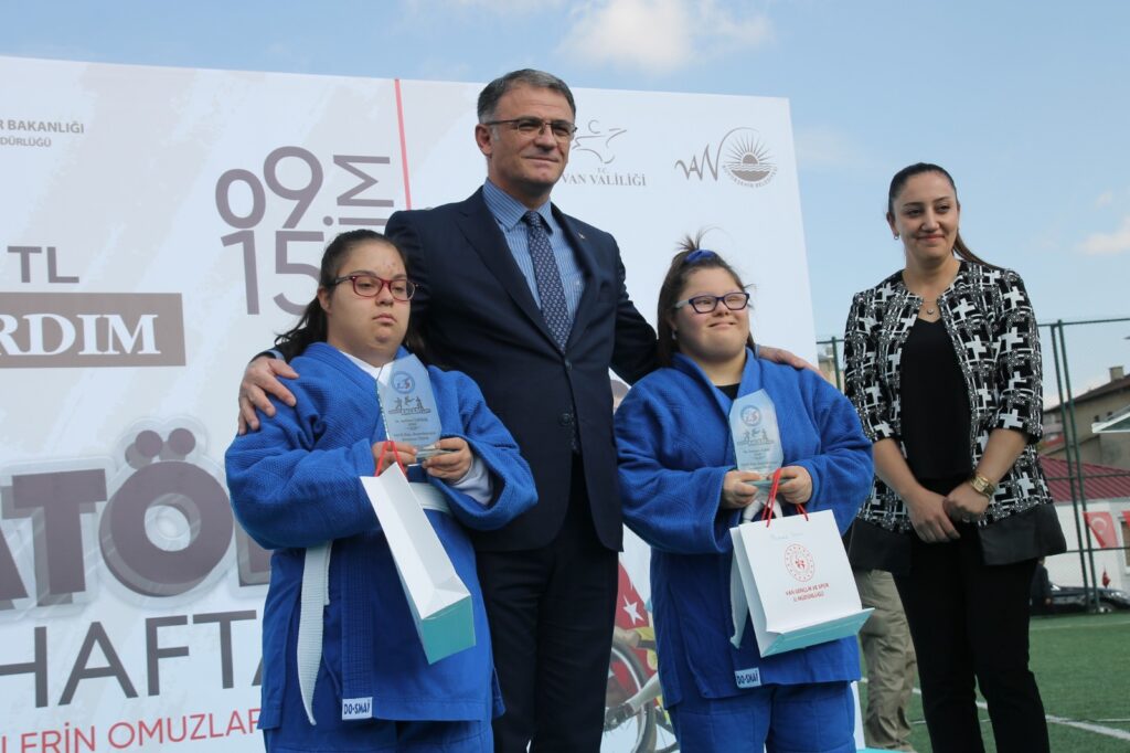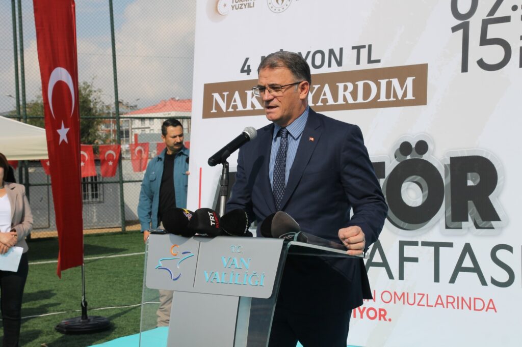 Ayrıca her ilçeye cumhuriyetimizin 100. kuruluş yıl dönümü münasebetiyle 2023 spor Van tesisi dediğimiz voleybol basketbol sahası, halı saha ve tenis kortundan oluşan 2023 açık hava spor tesislerini icra ettik. Bunu şunun için anlatıyorum. Bir taraftan sporu sevmek, öğrencileri sevmek, onların geleceğine inanmak, onların hayallerine destek vermek, bir taraftan bu hayalleri gerçekleştirmek için faaliyetler icra etmek, ligler düzenlemek, sportif faaliyetler düzenlemek, onlara destek vermek, diğer taraftan spor malzemelerini alıp çocuklarımızla buluşturmak ve spor altyapısına katkı sağlamak çok anlamlı ve önemli bir iştir.