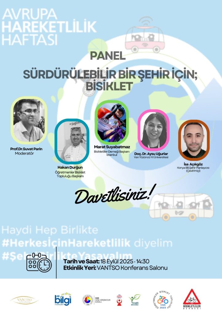 Van TSO M. Rifat Hisarcıklıoğlu Salonunda düzenlenecek olan "Sürdürülebilir Bir Şehir İçin Bisiklet Panel"de konuşacak olan uzmanlar bisiklet kullanımının önemine vurgu yapacak. Panelin ardından Van TSO’nun önünde başlayacak olan Bisiklet Turu gerçekleştirilecek.