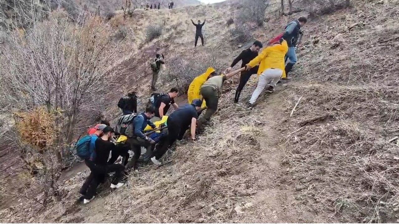 Vadi Doğa Grubu ile buraya geldiklerini ifade eden Vadi Doğa Kulübü üyesi Mahmut Çelik, "Bir arkadaşımız hafif bir kaza geçirdi. Ayağında bir yaralanma var. Kırık ya da çıkık olduğunu bilmediğimiz için her ihtimale karşı onu sağlama alıp sedye yaptık. Şimdi onu taşıyoruz. İnşallah onu bu şekilde sağ salim bir şekilde Van’a taşıyacağız" dedi.