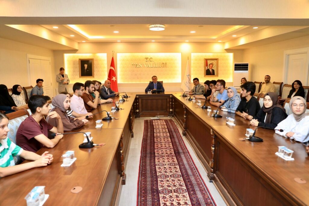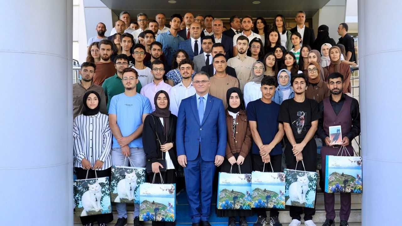 Van Valisi ve Büyükşehir Belediye Başkan Vekili Dr. Ozan Balcı, üniversite sınavında başarılı olan öğrencileri valilik binasında ağırlayarak, kitap hediye etti.