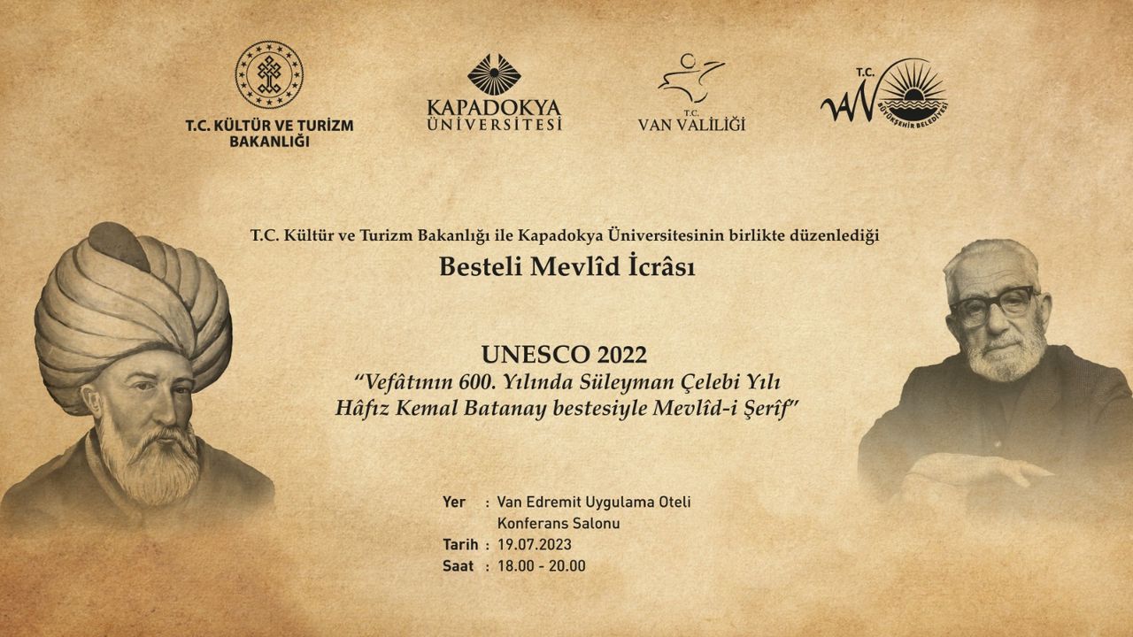Büyükşehir Belediyesi, Van Valiliği, Kültür ve Turizm Bakanlığı ve Kapadokya Üniversitesinin desteğiyle 6 Şubat 2023 tarihinde Kahramanmaraş merkezli depremlerde hayatını kaybedenler için Besteli Mevlîd İcrâsı düzenliyor. 19 Temmuz 2023 Çarşamba günü saat 18:00’da Van Edremit Uygulama Oteli Konferans Salonunda deprem şehitleri için düzenlenecek olan gecede, Vesiletü’n-Necât musiki formunda icra edilerek, Süleyman Çelebi yâd edilecek, millî birlik ve berberlik içerisinde manevi yaralarımız bir nebze olsa sarılmaya çalışılacak.