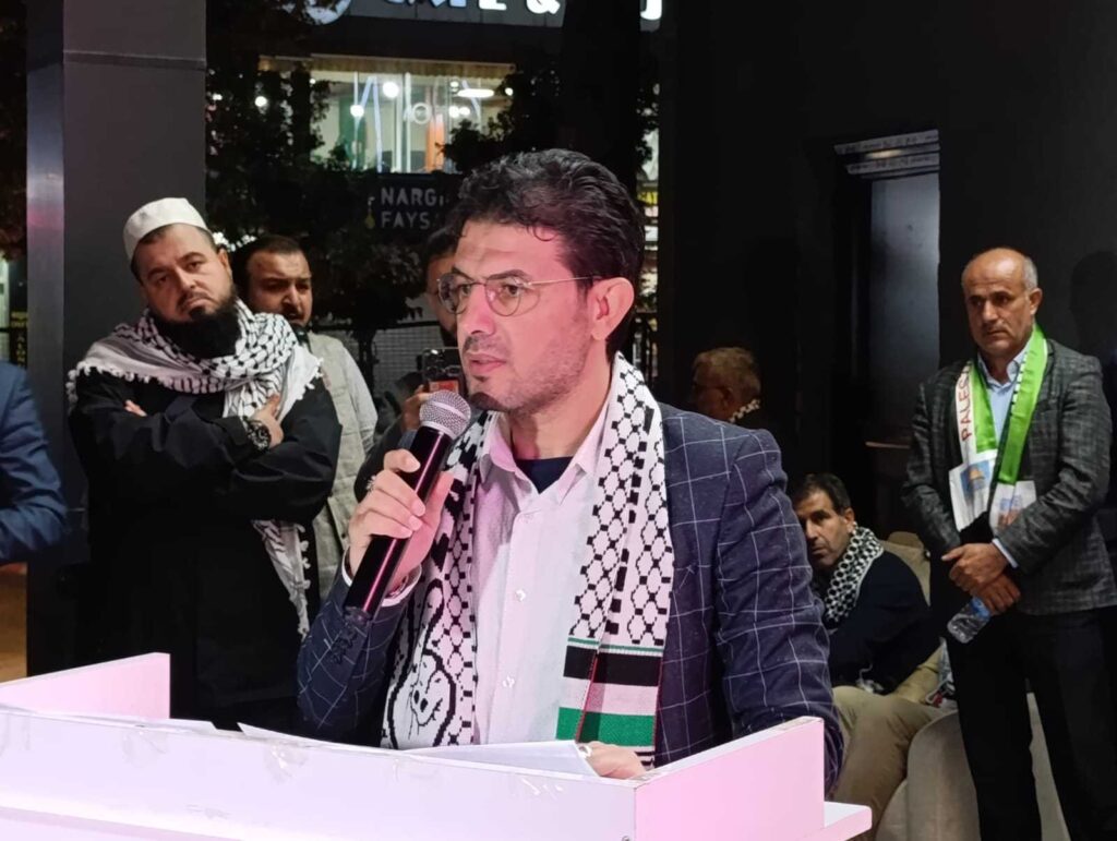 “Gazze’deki mücahitler ve binlerce şehitlerin adına sizlere teşekkür ederim. Ben Kuzey Gazze’de doğdum, orada büyüdüm ve yaralandım. Şu anda devam eden soykırımda ailemden 20 şehidimiz var. Allah rahmet eylesin.”