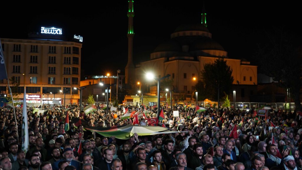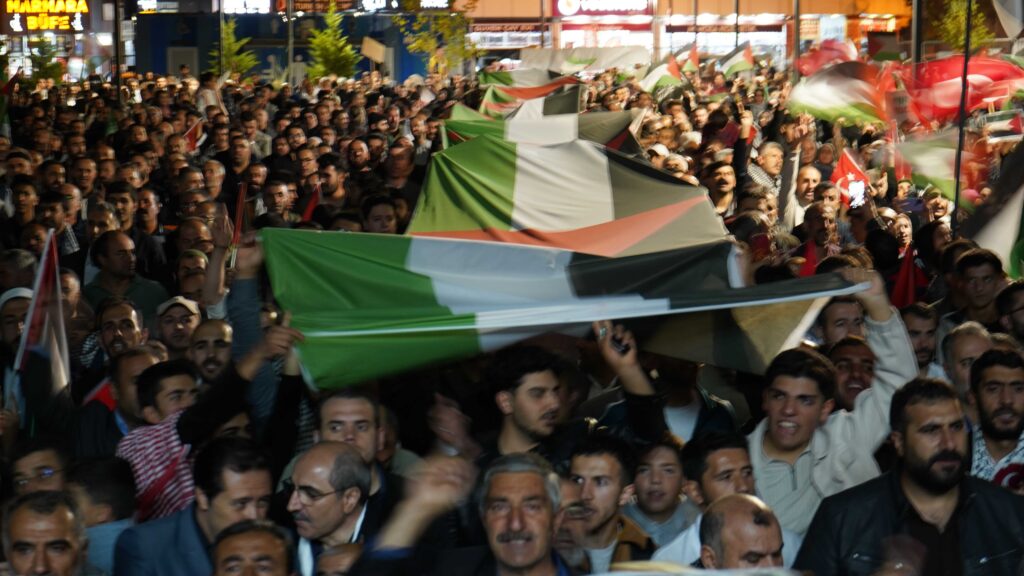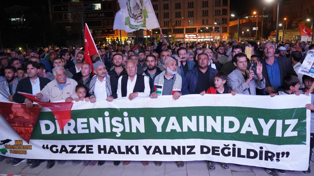Van’da binlerce vatandaş, Aksa Tufanı’nın yıldönümü dolayısıyla düzenlenen “Direnişin Yanındayız” temalı yürüyüşe katıldı. Van Kent Park’tan başlayan yürüyüş, Kent Meydanı’nda sona erdi.