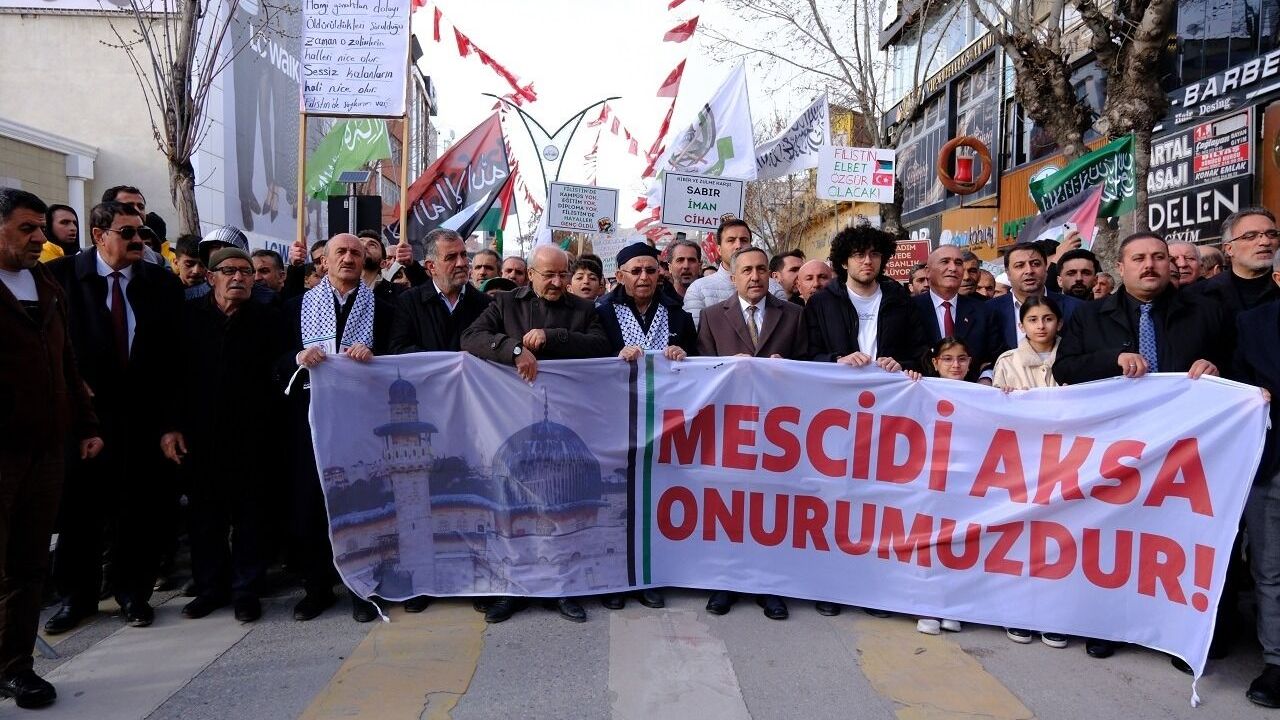 Van Filistin'e Destek Platformu ile Van Sivil Dayanışma İnisiyatifi (SDİ) tarafından organize edilen "Zulme Karşı Tek Ses" temalı program, binlerce vatandaşın katılımıyla gerçekleştirildi. Öğle saatlerinde Beşyol Meydanı’nda bir araya gelen her yaştan Vanlı, ellerinde Filistin ve Türk bayraklarının yanı sıra "Katil İsrail Filistin'den Defol", "Direnişe Selam, Siyonizme Lanet" yazılı dövizlerle yürüyüşe başladı.