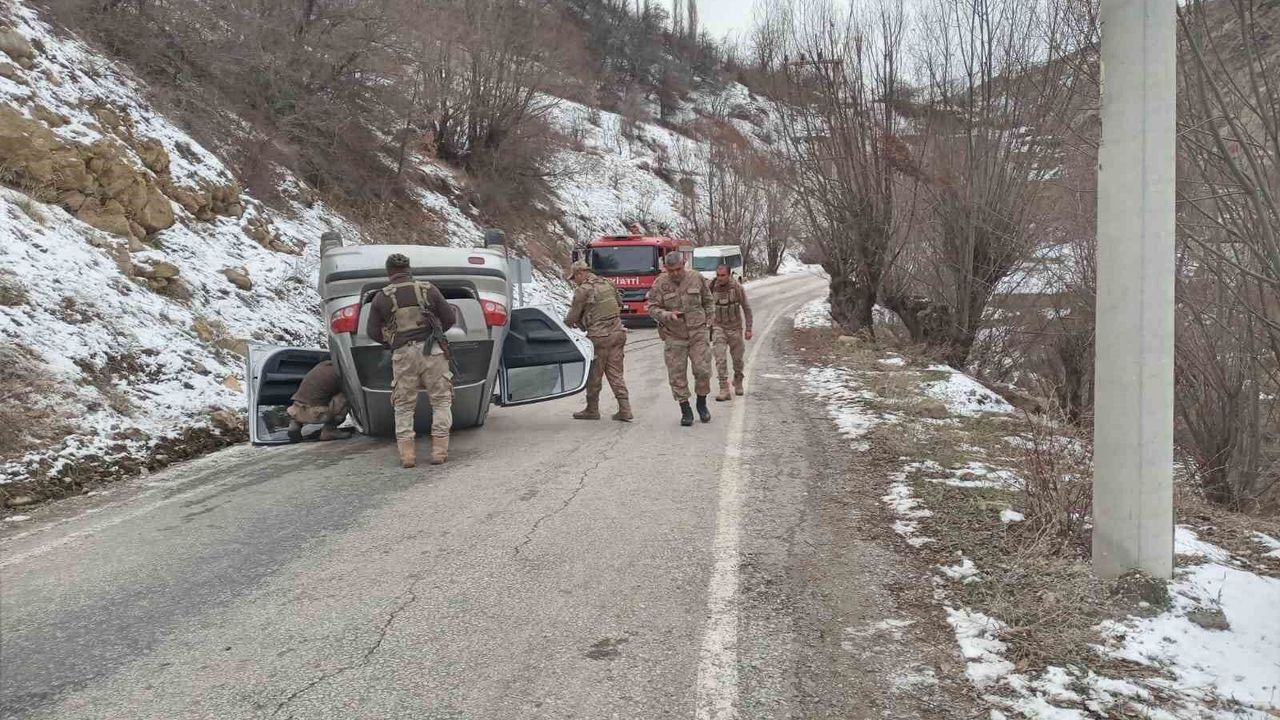 Alınan bilgilere göre kaza, ilçedeki Kırmızı Köprü mevkiinde meydana geldi. E.İ. idaresindeki 42 CPF 89 plakalı otomobil, buzlanmadan dolayı kontrolden çıkarak takla attı. Bahçesaray İtfaiye Grup Amirliği ekiplerinin de müdahalesiyle hafif yaralanan sürücü E.İ. ile yanındaki 1 kişi ambulansla hastaneye kaldırıldı. Jandarma ekipleri kazayla ilgili inceleme başlattı.