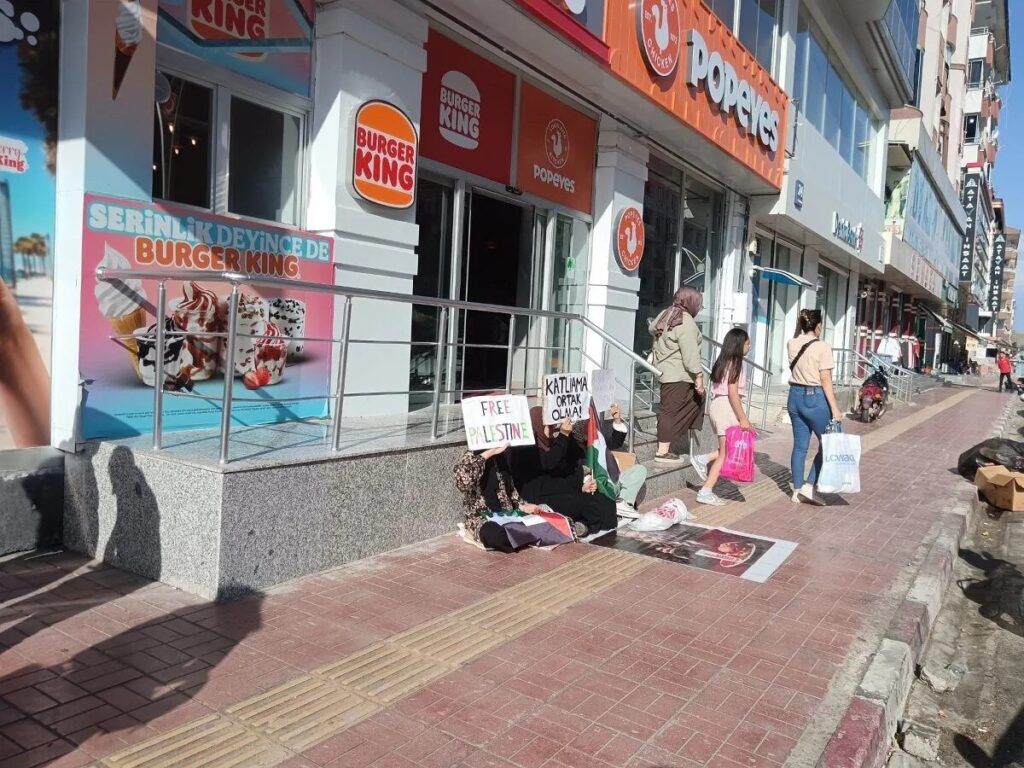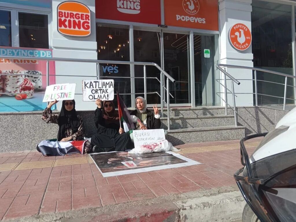 Amaçlarının Burger King ve Popeyes'in katliamcı İsrail'e olan desteği ve bu şirketlerin politikalarını kınamak olduğunu söyleyen gençler, vatandaşlardan bu tür şirketleri boykot etmeleri gerektiğini ve insan haklarına duyarsız kalmamalarını istedi.