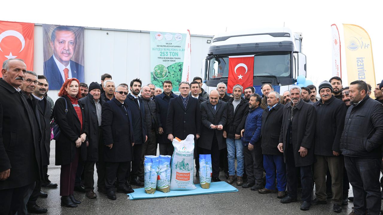 Geçen yıl çiftçilerimize sertifikalı arpa, buğday, korunga, yonca ve fiğ dağıttık. Şimdi yine 580 ton korunga, yonca ve fiğ dağıtıyoruz.
