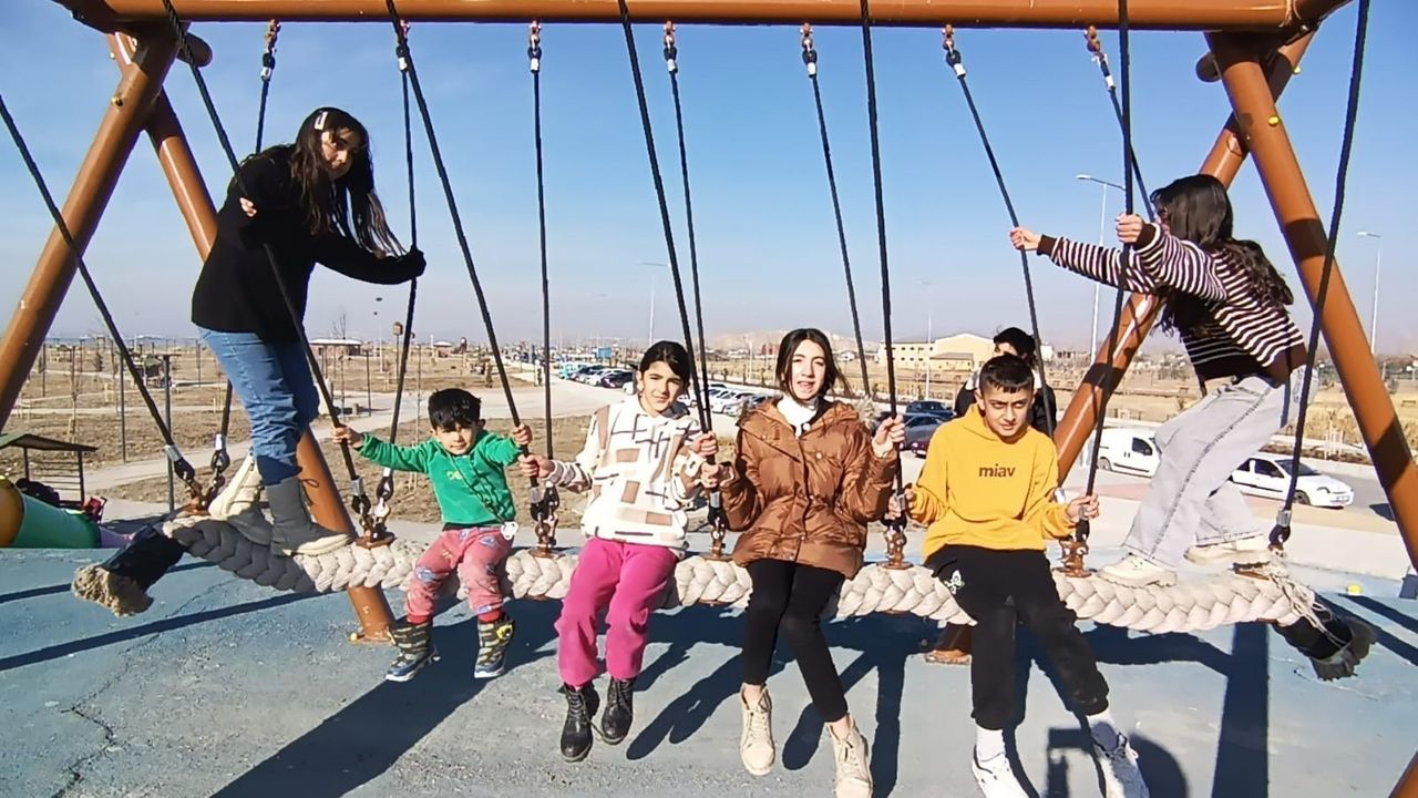 Van’da güneşli havayı fırsat bilen çocuklar, aileleriyle parklarda güzel havanın keyfini çıkardı.