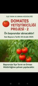 Üreticilere destek sağlamayı amaçlayan proje için son başvuru tarihinin 3 Aralık 2025 olduğu bildirildi. Projeden faydalanmak isteyen üreticilerin, başvurularını İlçe Tarım ve Orman Müdürlüğüne şahsen yapmaları gerektiğini dile getiren yetkililer, tarımsal üretimin güçlendirilmesi ve kaliteli domates yetiştiriciliğinin artırılması amacıyla yürütülen projenin bölge çiftçisine önemli katkı sağlayacağını ifade etti.