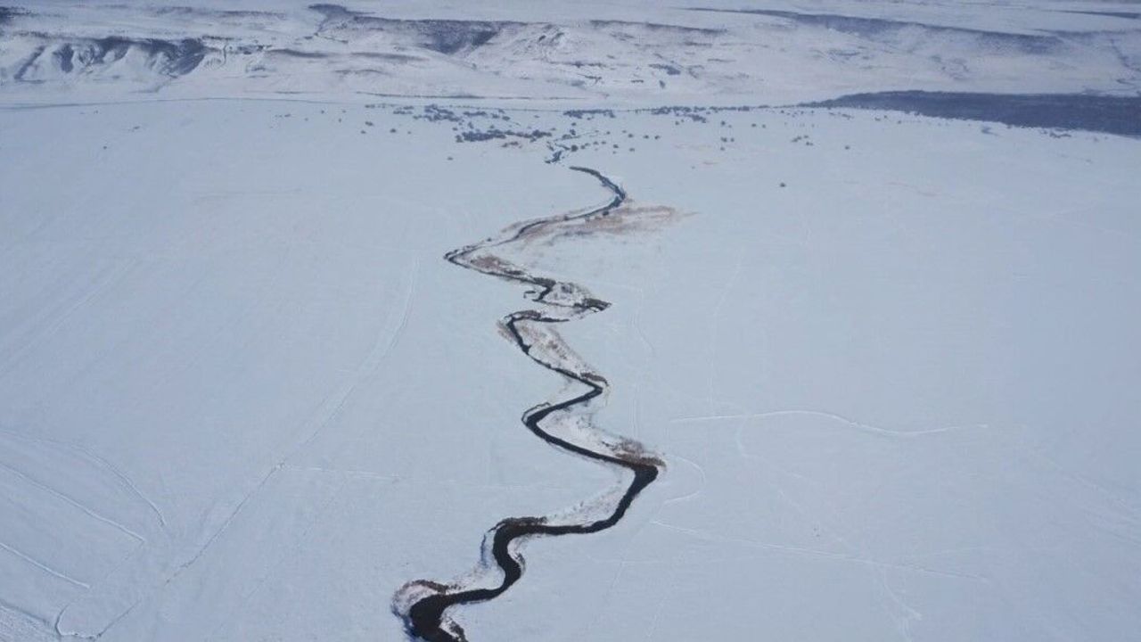 Havadan da görüntülenen kırağı tutmuş ağaçlar ve menderes görenleri hayran bırakıyor.