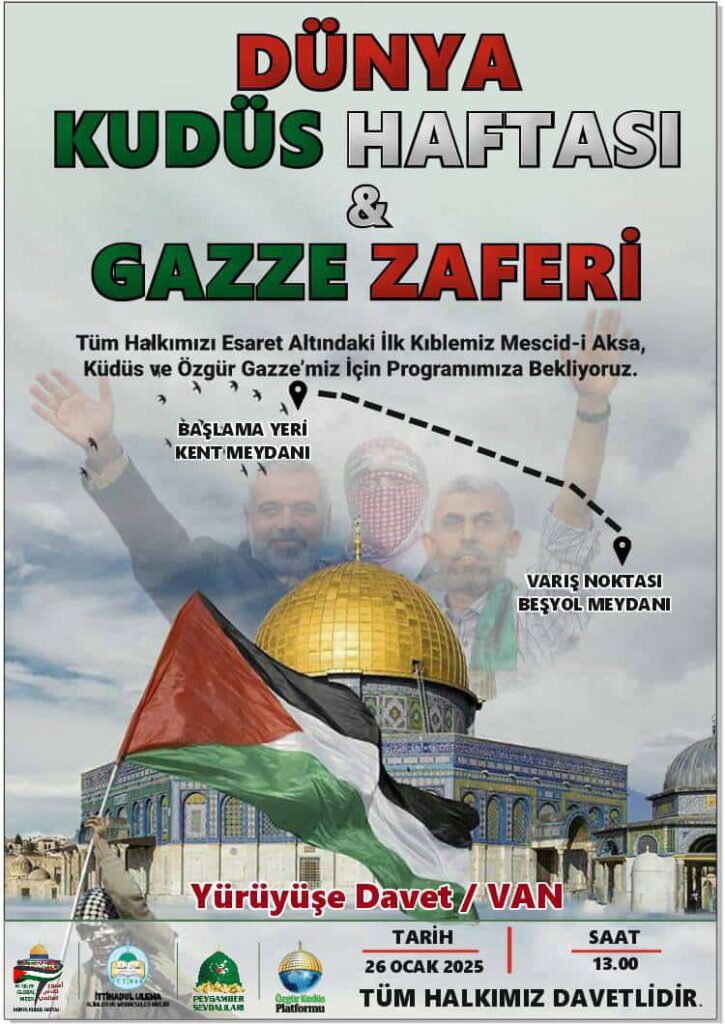 İttihadul Ulema, Peygamber Sevdalıları Vakfı ve Özgür Kudüs Platformu tarafından yapılan etkinliğe bütün Van halkı davet edildi.