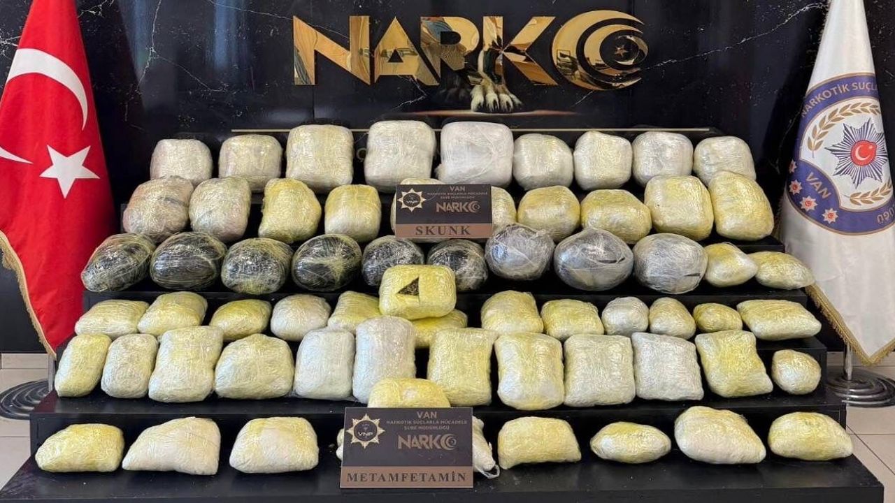 Bu kapsamda; Narkotik Suçlarla Mücadele Şube Müdürlüğü görevlilerince gerçekleştirilen risk analizi çalışmaları sonucunda, 10 Nisan 2026 tarihinde Gevaş ilçesinde bir kamyon durduruldu. Durdurulan araçta yapılan detaylı aramada; 10 parça halinde 14 kilo 120 gram metamfetamin ile 56 parça halinde 60 kilo 200 gram skunk maddesi ele geçirildi.