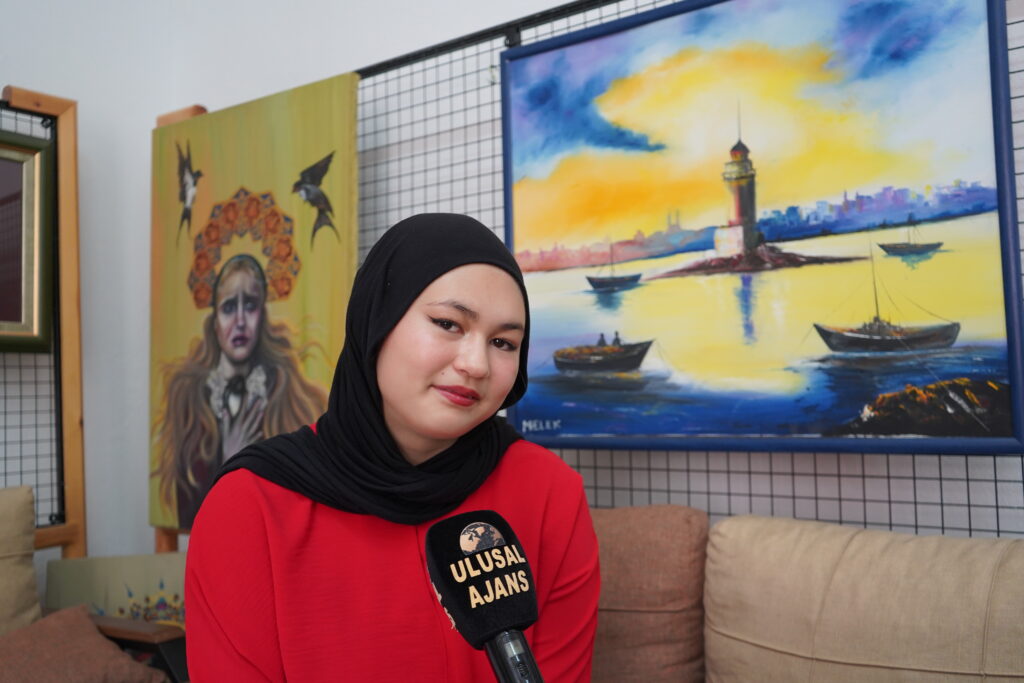 Annesi Kırgız, babası Vanlı olan Melek, resimle tanışma sürecini ve yeteneğini Ulusal Ajansa anlattı. Melek, “Küçükken arkadaşlarım benimle oyun oynamıyorlardı, dışlanıyordum. Bir köşede yalnız başıma resim çizmeye başladım. Zorbalıklar beni kırdı ama resimle yeniden ayağa kalktım. Çünkü çizdiğim her resim beni biraz daha özgürleştirdi” dedi.
