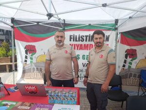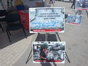 Elma, yürüttükleri çalışmalara değinerek, “Afrika’da su kuyularımız, kurban organizasyonlarımız, keçi projelerimiz var. Asya’da da benzer faaliyetlerimiz devam ediyor. Şu an ise önceliğimiz tamamen Gazze. Buradaki kardeşlerimize elimizden geldiğince destek olmaya çalışıyoruz. Bugün açtığımız sergi de Filistinliler yararına düzenlendi” ifadelerini kullandı.