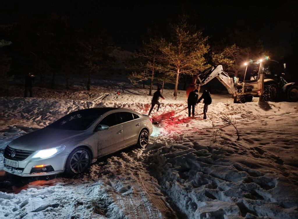 Kısa sürede iş makinası ve tuzlama aracı ile olay yerine ulaşan ekipler, uzun uğraşlar sonucu araçları bulundukları yerlerden çekerek kurtardı. Gece saat 03.00’te tamamlanan kurtarma çalışması ile 3 araç ve araçlarda bulunan vatandaşlar kurtarıldı.