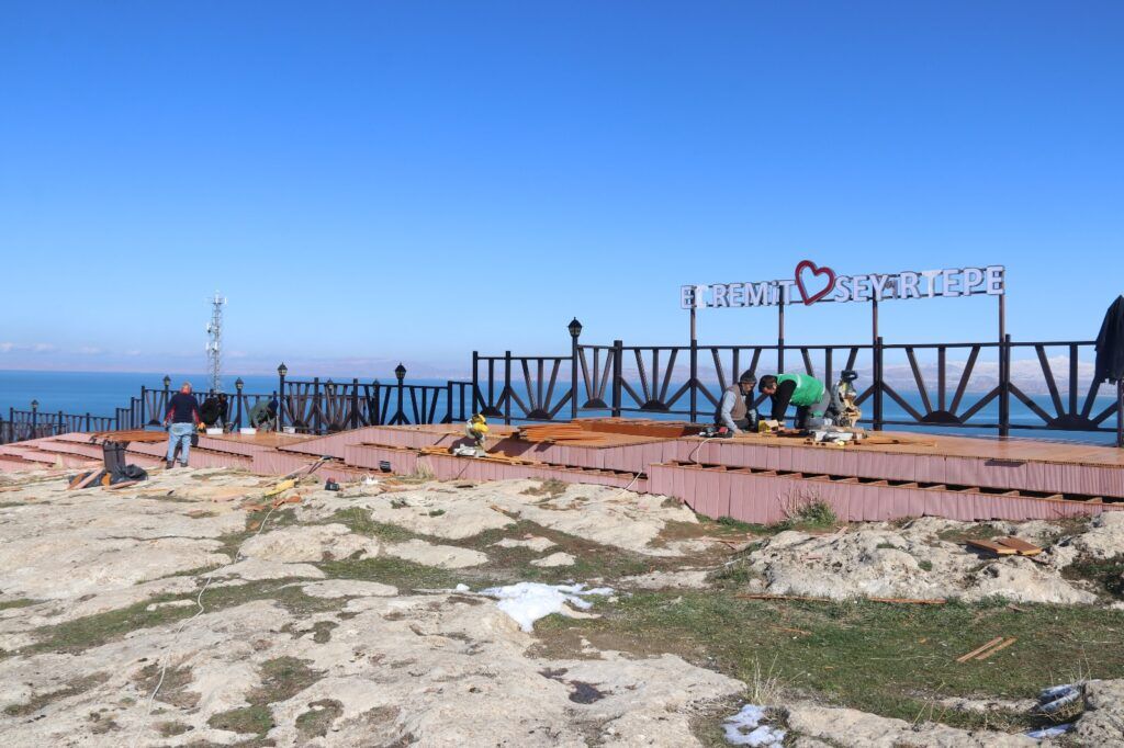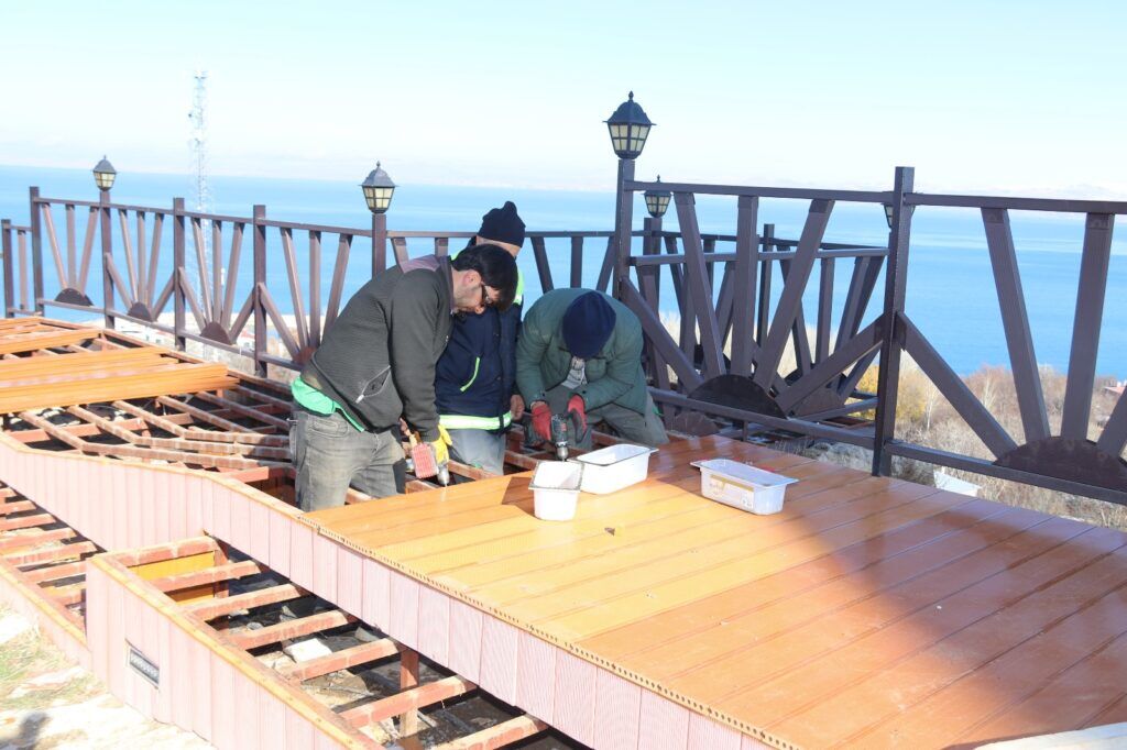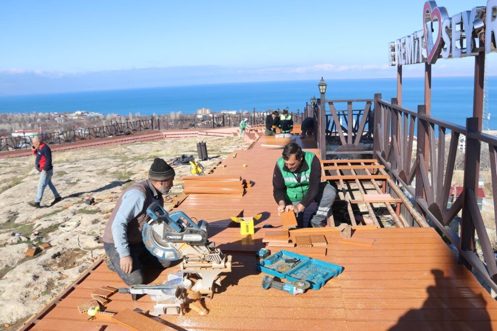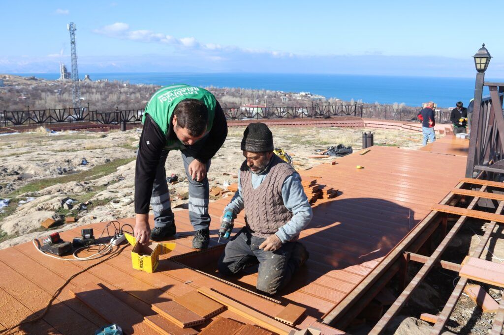Van’ın Edremit Belediyesi kentin uğrak alanlarından Seyir Tepesi’nde yenileme çalışması başlattı. Her mevsim, yoğun bir ziyaretçi kitlesini ağırlayan alanın merdiven ve yürüyüş yolu yenileniyor. Belediye ekipleri, tahrip olması sonucu kaza ve kaymalara neden olan eskimiş deckleri yeni ahşap decklerle değiştiriyor. 600 metre boyunca yapılan çalışmalarla, yürüyüş yolunun aşınmalara karşı daha dirençli olması hedefleniyor.