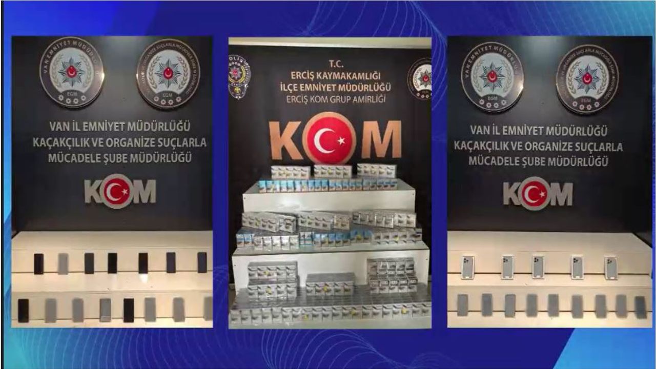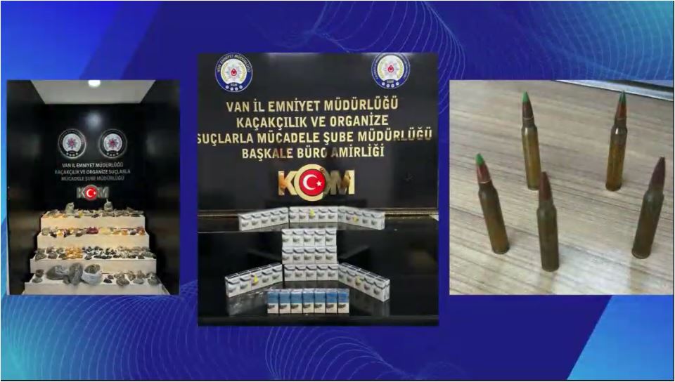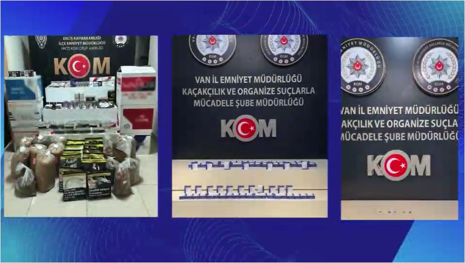 Van Emniyet Müdürlüğünden yapılan açıklamada, il genelinde Kaçakçılık ve Organize Suçlarla Mücadele Şube Müdürlüğü görevlilerince yürütülen çalışmaların devam ettiği belirtilerek, “5607 SKM suçu kapsamında yapılan çalışmalarda; 32.000 adet makaron, 5.100 adet doldurulmuş makaron, 1.938 paket sigara, 950 adet ilaç (steroid), 520 adet TAPDK bandrolü, 494 adet cep telefonu aksesuarı, 286 adet cep telefonu, 270 adet puro, 82,38 kilogram açık tütün, 28 adet elektronik sigara, 5 adet tarihi eser niteliğinde olduğu değerlendirilen sikke, 5 kilogram nargile tütünü ele geçirilmiştir. 6136 SKM suçu kapsamında yapılan çalışmalarda ise 7 adet tabanca fişeği, 5 adet uzun namlu silah fişeği, 1 adet tabanca ele geçirilmiştir. Ele geçirilen suç unsurları ve toplam 16 olay kapsamında 18 şahıs hakkında gerekli yasal işlemler yapılmıştır” denildi.