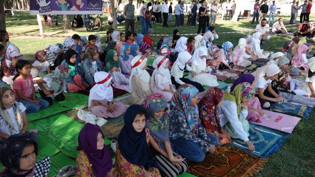 Yüzlerce çocuğun yanı sıra ailelerin de yoğun katılım gösterdiği etkinlik, Kur’an-ı Kerim tilavetiyle başladı. Program, Peygamber Sevdalıları Vakfı İl Başkan Yardımcısı Ahmet Faruk Çevik’in namazın önemine dair konuşmasıyla devam etti.