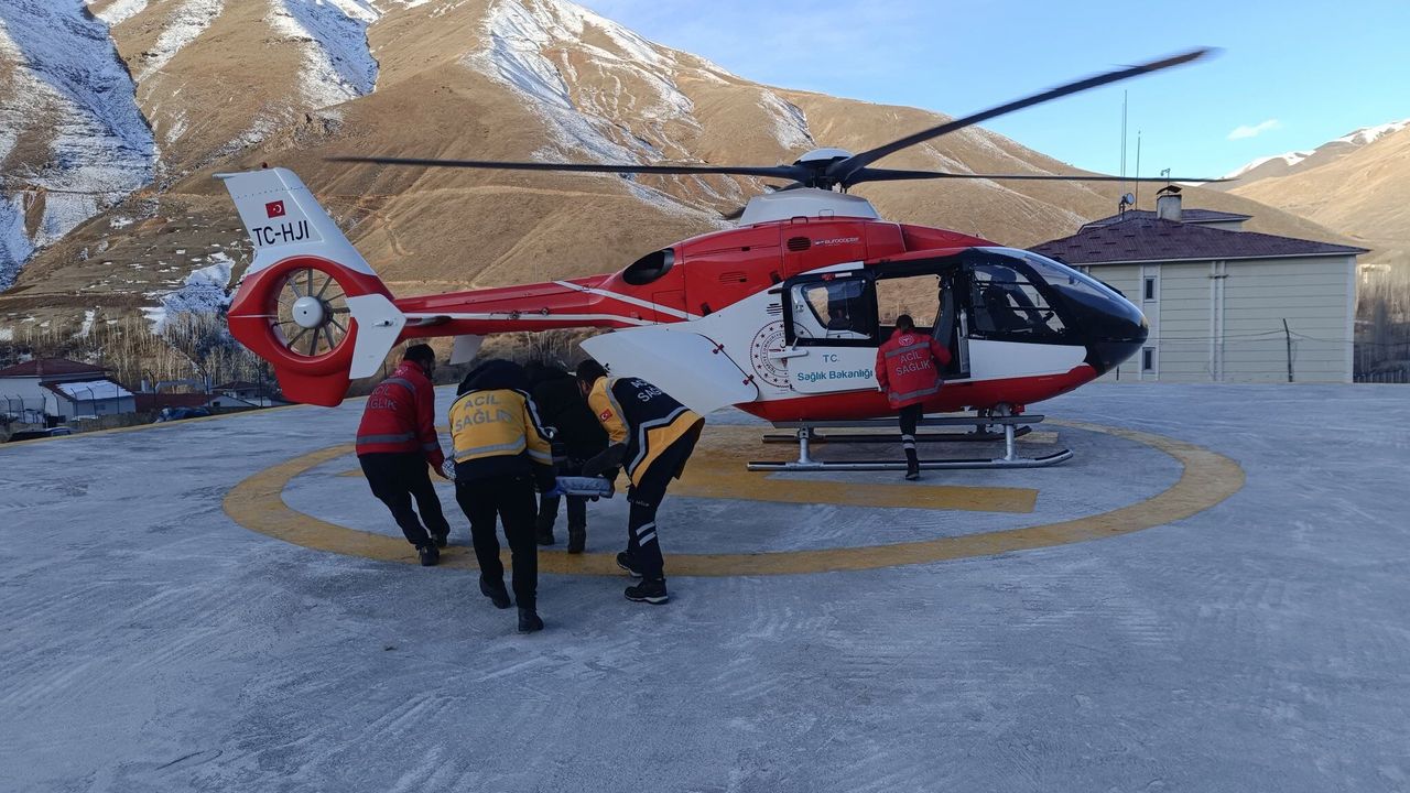 Bahçesaray Devlet Hastanesi’nde tedavi gören 60 yaşındaki hastanın durumu ağırlaşınca, ileri tetkik ve tedavi için SBÜ Van Eğitim ve Araştırma Hastanesi’ne sevkine karar verildi. Kara ambulansla ulaşımda zorluk yaşanabileceği göz önünde bulundurularak, Sağlık İl Müdürlüğü’ne başvurulup helikopter ambulans talep edildi. Kısa sürede bölgeye ulaşan helikopter, hastayı alarak Van’a naklini sağladı.