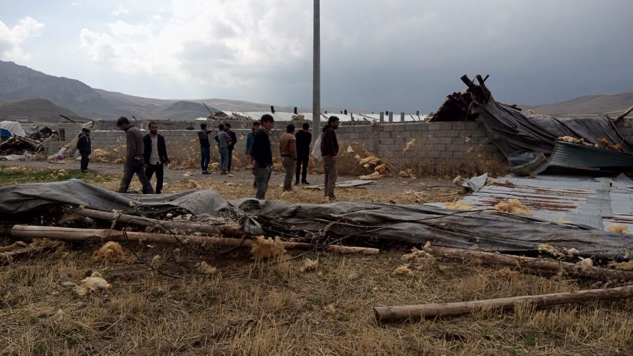 Van’ın Tuşba ilçesinde çıkan hortum nedeniyle bir çiftlik yerle bir olurken, hayvanların ise yaralandığı belirtildi.