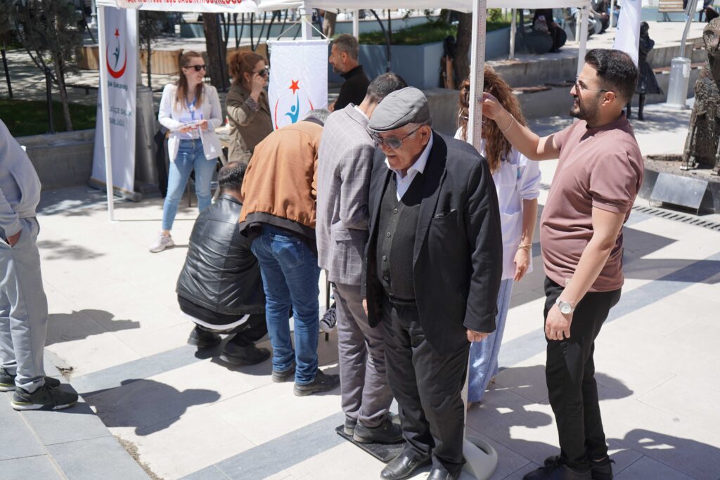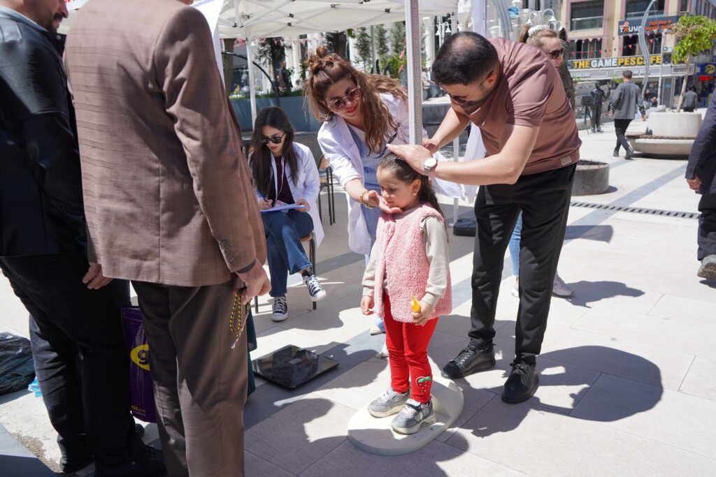 Cumhuriyet Caddesi Sanat Sokağı’na kurulan stantta kilo ve boy kontrolleri yapılarak beden kitle endeksi 25’in üzerinde olanlar sağlık merkezlerine yönlendirerek ideal kiloya ulaşmaları ve daha sağlıklı yaşamaları amaçlanıyor.
