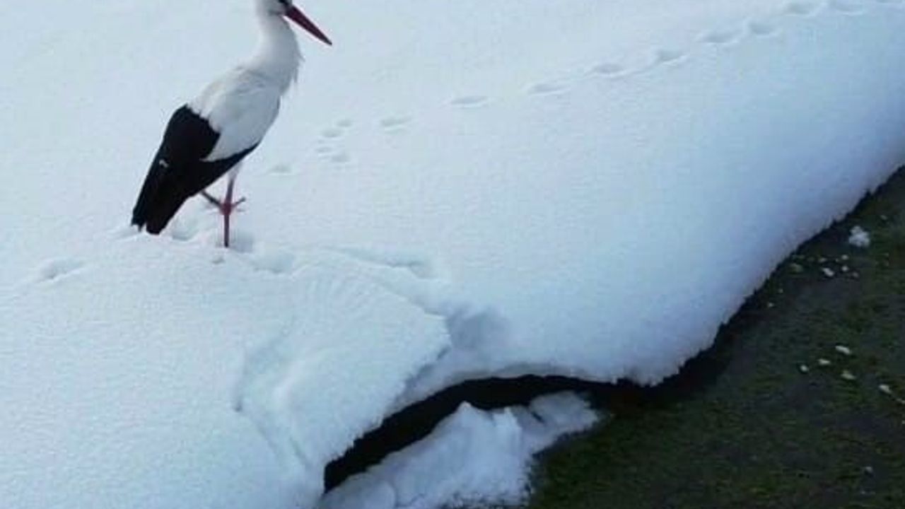 Van’ın Özalp ilçesine bağlı Hacı Ali Mahallesi’ndeki baz istasyonu direğinde yuva kuran ve sonbaharda göç eden leyleklerden ikisi, bu yıl göç etmeyerek kışın dondurucu soğuğunda mahallede kaldı.
