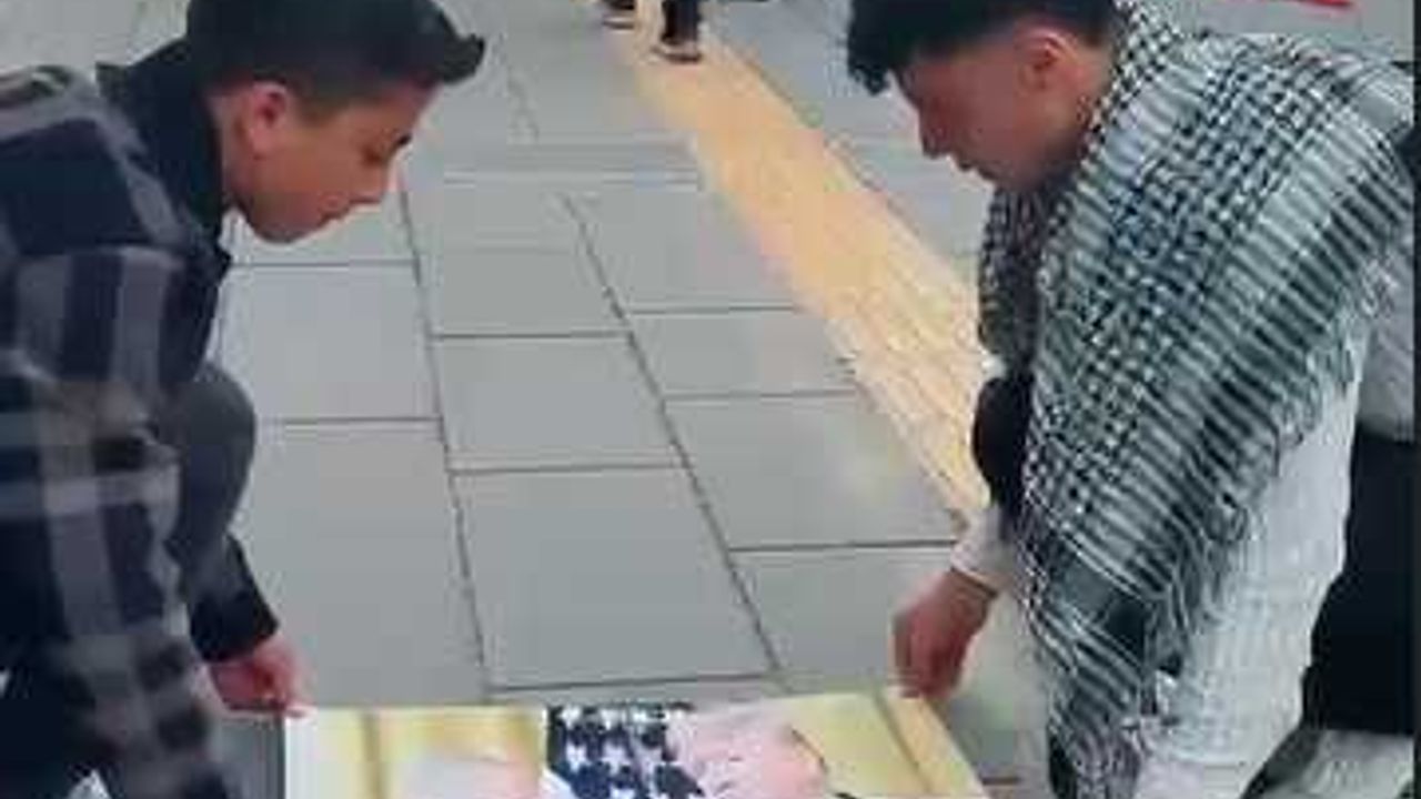 Kent merkezinde bir araya gelen gençler, İsrail bayrağı ile birlikte Netanyahu ve Trump’ın posterlerini kaldırıma yapıştırarak ayaklar altına aldı. Ayrıca kaldırıma bırakılan bebek figürleri ile Gazze’de hayatını kaybeden çocuklara dikkat çekildi.