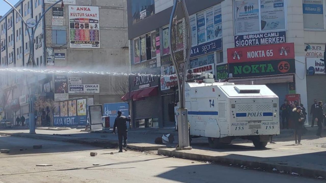 Bugün de DEM Parti öncülüğünde Cumhuriyet Caddesi üzerindeki Fekiye Teyran Parkı’nda yapılmak istenen ‘halk buluşmasına’ polis ekipleri müdahalede bulundu. Bazı kişilerin gözaltına alındığı olaylarda, polis ekiplerinin tazyikli suyla müdahalesi devam ediyor.