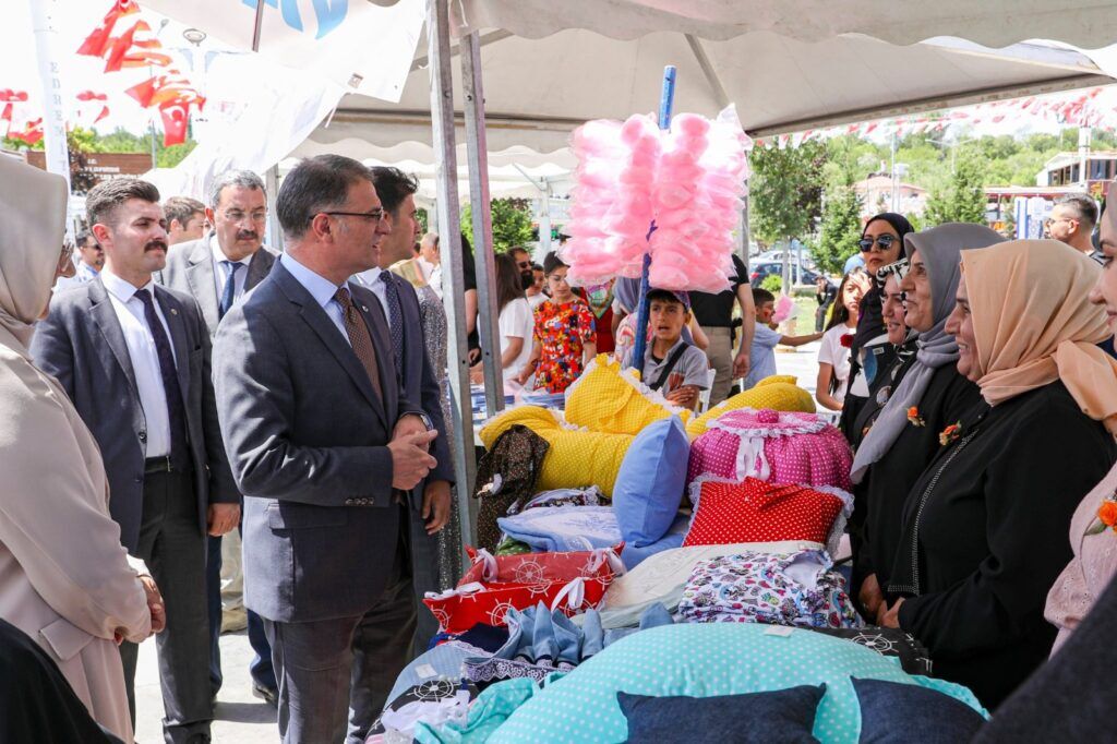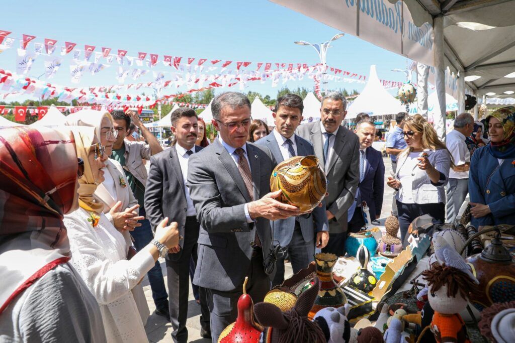 Vali Ozan Balcı ve beraberindekiler daha sonra açılan standları dolaşarak ürünler hakkında bilgi aldı.