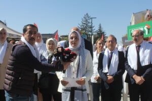 Etkinlikte konuşan AK Parti Van İl Kadın Kolları Başkanı Zerrin Alparslan, Gazze’de yaşanan insanlık dramına dikkat çekti. Alparslan, “Duvarlara kanla yazılmış isimler, bir annenin yitik hayali, bir çocuğun hiç göremeyeceği bahar… İşte bu acının adı Gazze. Bugün Van’dan Gazze’nin sessiz çığlığına ses olmak için meydanlardayız. Bu zincir, evlatlarını kaybeden anne-babaların, öksüz-yetim bırakılan çocukların ve insanlığını kaybetmeyen herkesin zinciridir” dedi.