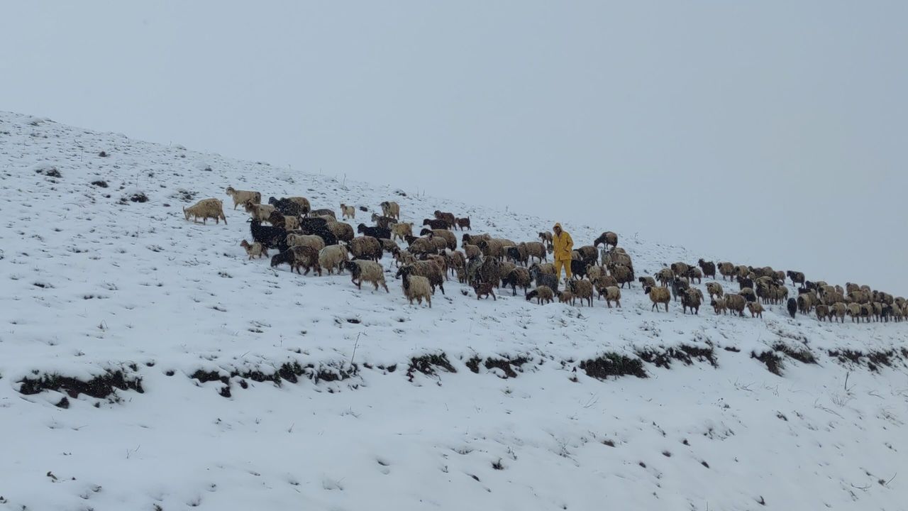 Van'da bir haftadan buyana belli aralıklarla devam eden kar yağışı, yüksek kesimlerde yerini kar yağışına bıraktı. İpekyolu ile Gürpınar ilçesi sınırları arasında bulunan 3 bin 204 rakımlı Erek Dağı, kar yağışı ile birlikte beyaza büründü. Hava sıcaklığının da hissedilir derecede düştüğü yüksek kesimli bölgelerde kara yakalanan küçükbaş hayvanlar, çobanlar tarafından ağıllara geri getirildi