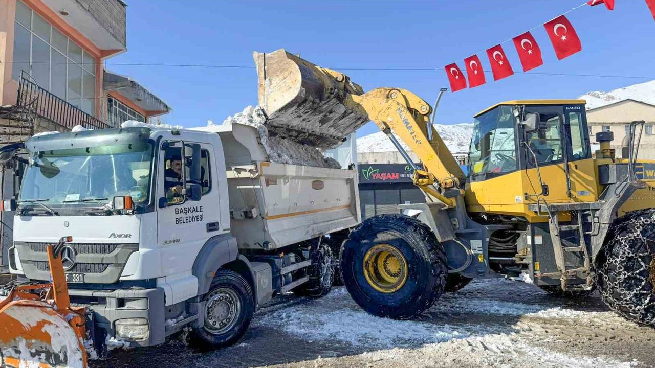Başkale ilçesinde etkili olan kar yağışı sonrası hayat adeta durma noktasına geldi. İlçe merkezinde kar kalınlığı 30 santimetre, kırsal mahallelerde ise 1 metreyi geçti. 37 yerleşim yolunun hala kapalı olduğu ilçede belediye ekipleri yoğun mesai yapıyor. Van Büyükşehir Belediyesi ve Başkale Belediyesi karla mücadele ekipleri, kardan kapanan yolların tekrar ulaşıma açılması için kırsal mahallelerde çalışmalarına devam ederken, ilçe merkezinde ise biriken kar yığını kamyonlarla taşınıyor. 4 kamyon, 6 iş makinesi ve 20 personelin görev aldığı çalışmalarda, ilçe merkezinde biriken kar yığınları iş makinelerinin yardımıyla kamyonlara yüklenip ilçe dışına çıkartılıyor. Kamyonlara yüklenen kar, mesire alanının alt tarafında bulunan dereye boşaltılıyor. 4 kamyonun ortalama 20 sefer yaptığı çalışmalarda şu ana kadar toplamda 80 kamyon kar taşındı. Karın taşındığı iki bölgede adeta kardan tepeler oluşurken, iş makinesi yardımıyla dereye dökülüyor.