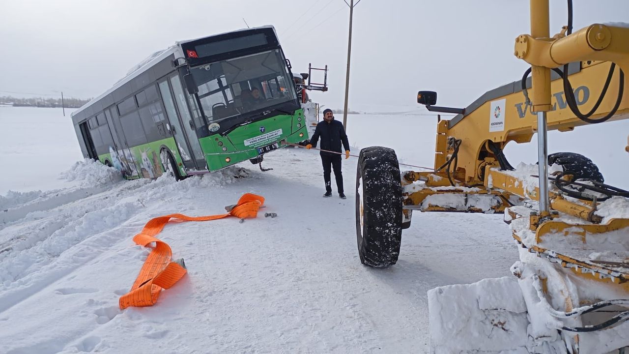 Erçek bölgesinde, Van Büyükşehir Belediyesi’ne ait bir halk otobüsü Erçek ile Karagündüz Mahallesi arasında yoldan çıkarak arazide mahsur kaldı. İhbar üzerine bölgeye sevk edilen İpekyolu Belediyesi Fen İşleri Müdürlüğü karla mücadele ekipleri, kısa sürede müdahale ederek otobüsü saplandığı kardan kurtardı. Otobüste bulunan yolcuların güvenliği sağlanırken, araç da güvenli biçimde yola çıkarılarak seferine devam etmesi sağlandı.