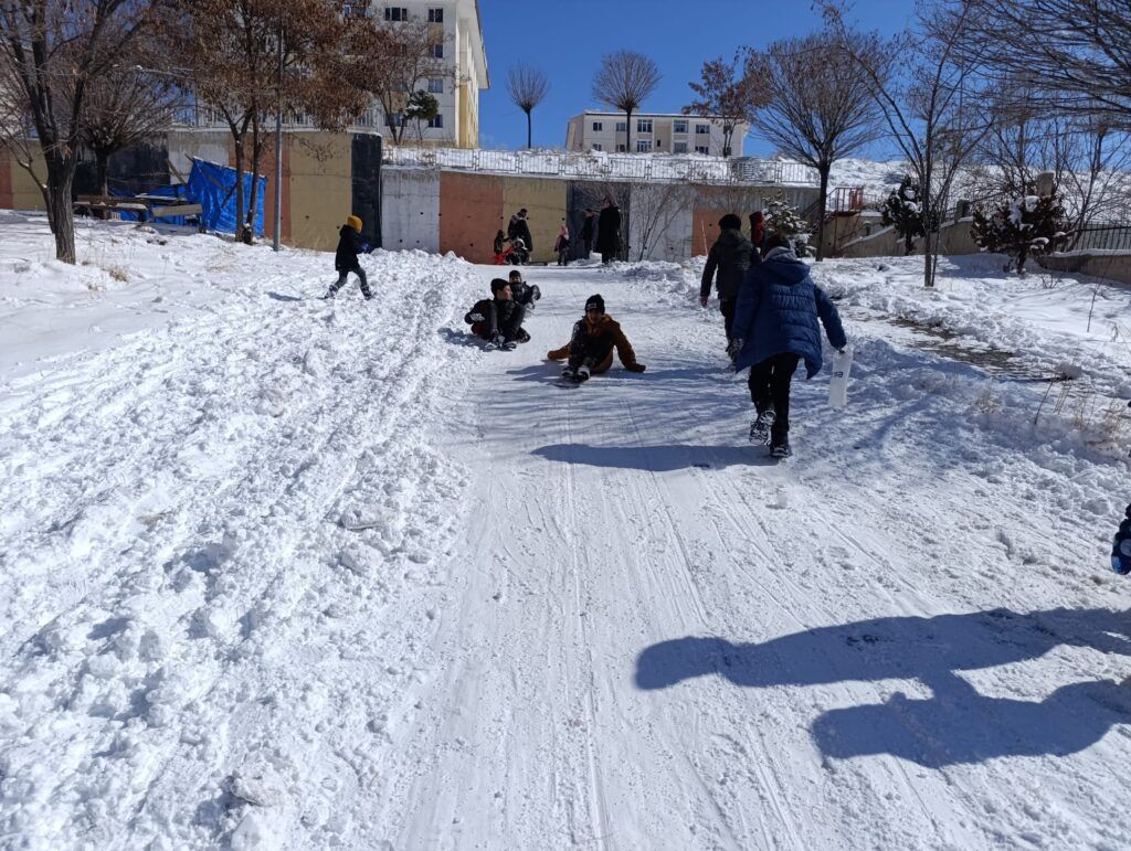 Soğuk havaya aldırış etmeden gün boyu oyunlar oynayan çocuklar, "Okullar tatil olduğu için çok mutluyuz. Kızak kaymak en sevdiğimiz şeylerden biri. Karı çok seviyoruz ve tatilin tadını çıkarıyoruz" diyerek mutluluklarını dile getirdi.