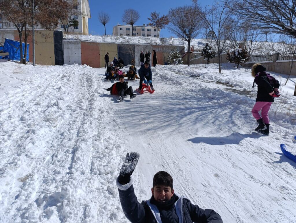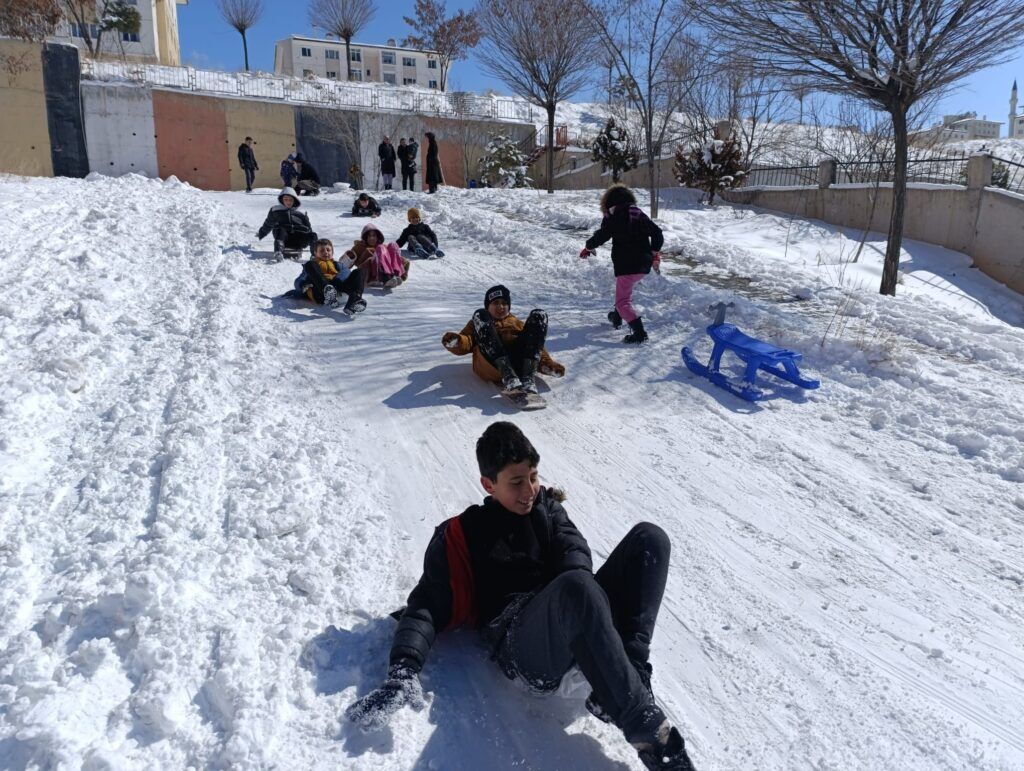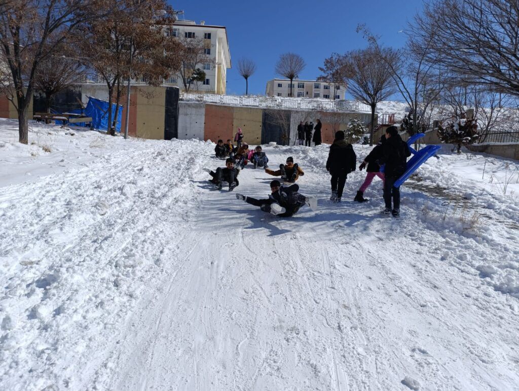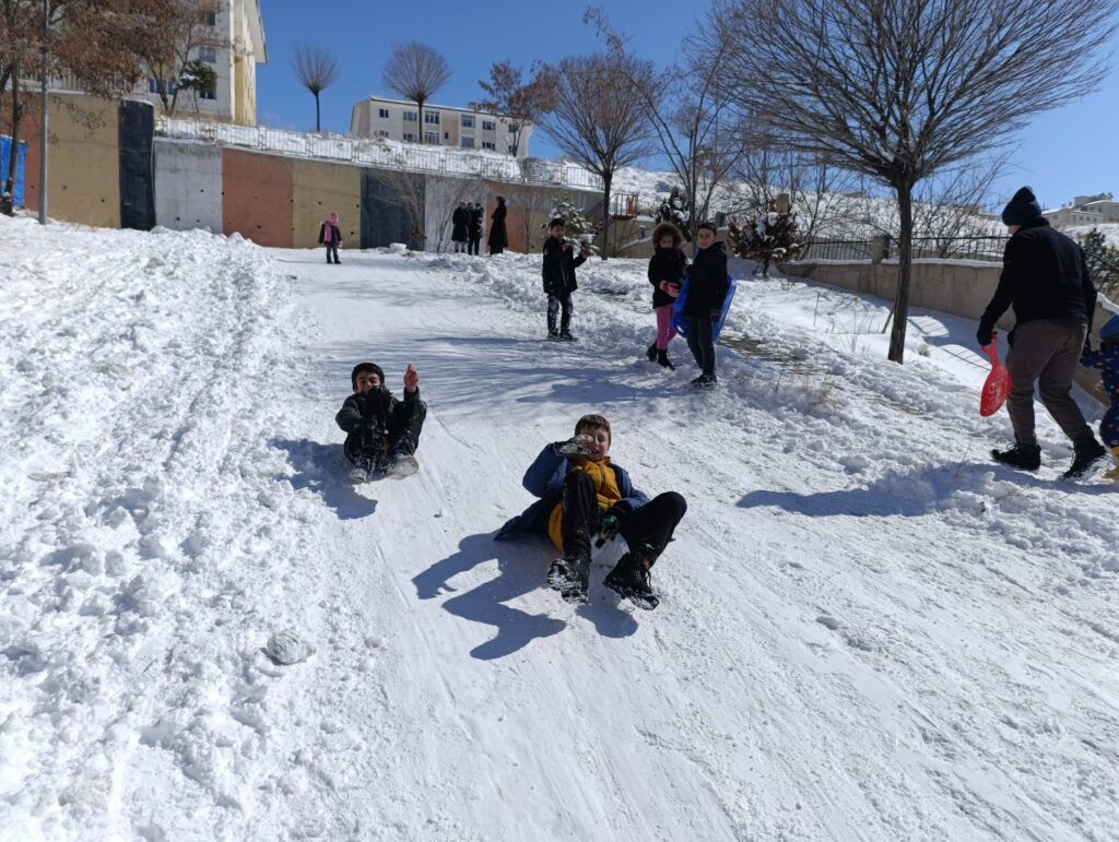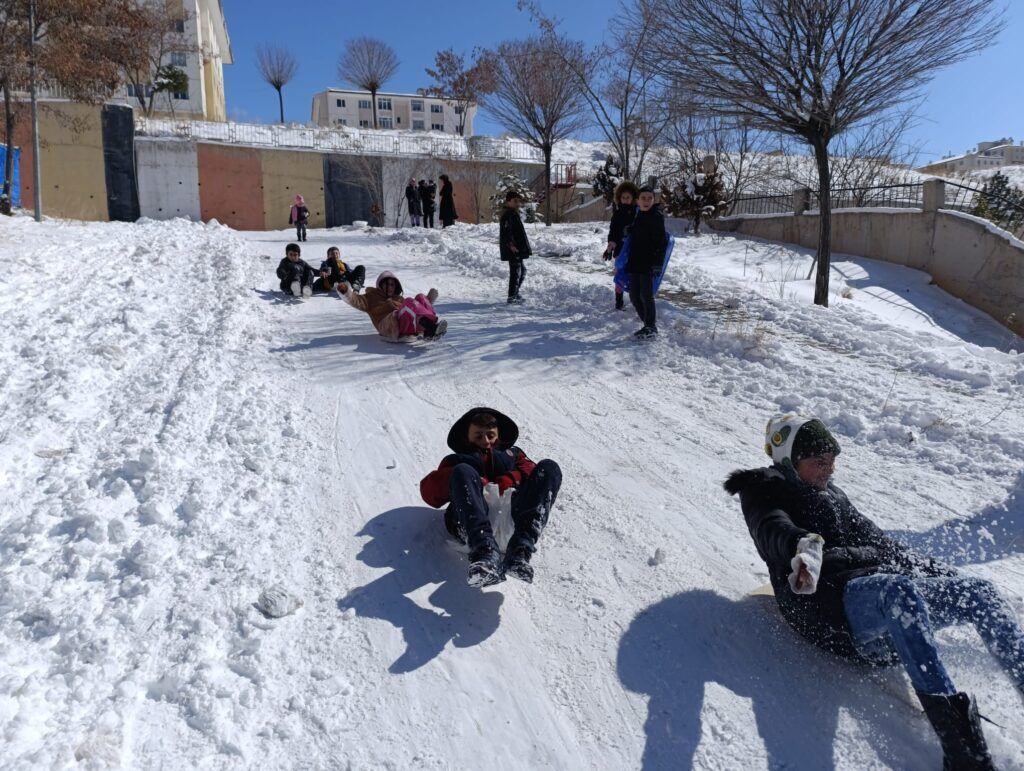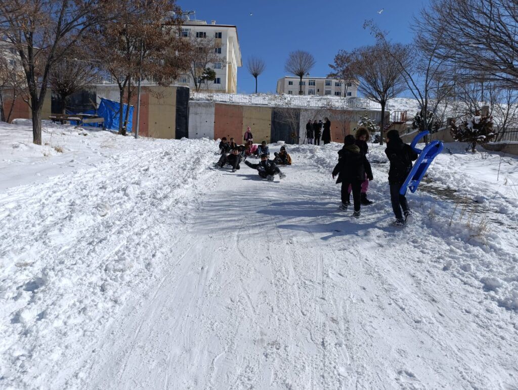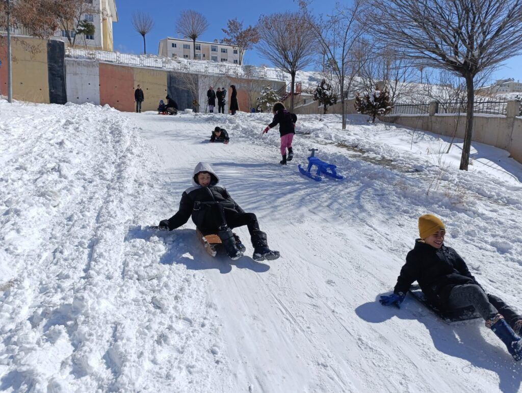 Kar yağışının ardından sabah erken saatlerde dışarı çıkan çocuklar, evlerinden getirdikleri kızaklarla eğlenceli anlar yaşarken, kızak bulamayanlar ise poşetlerle kayarak adeta kendi oyun alanlarını oluşturdu. Kahkahaların eksik olmadığı anlarda, zaman zaman büyükler de çocuklara eşlik ederek çocukluk günlerine geri döndü.