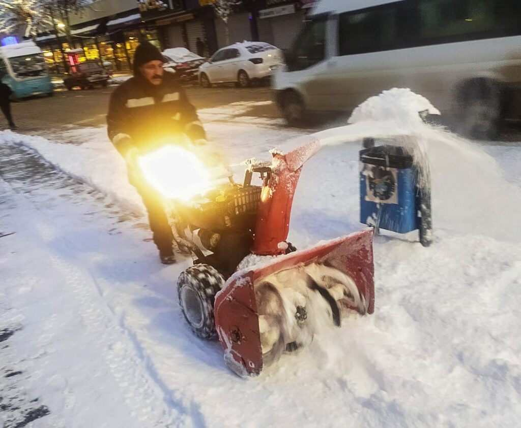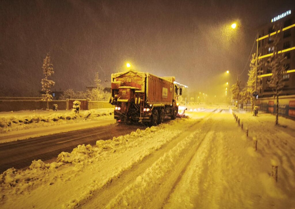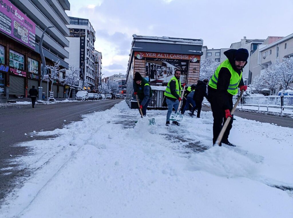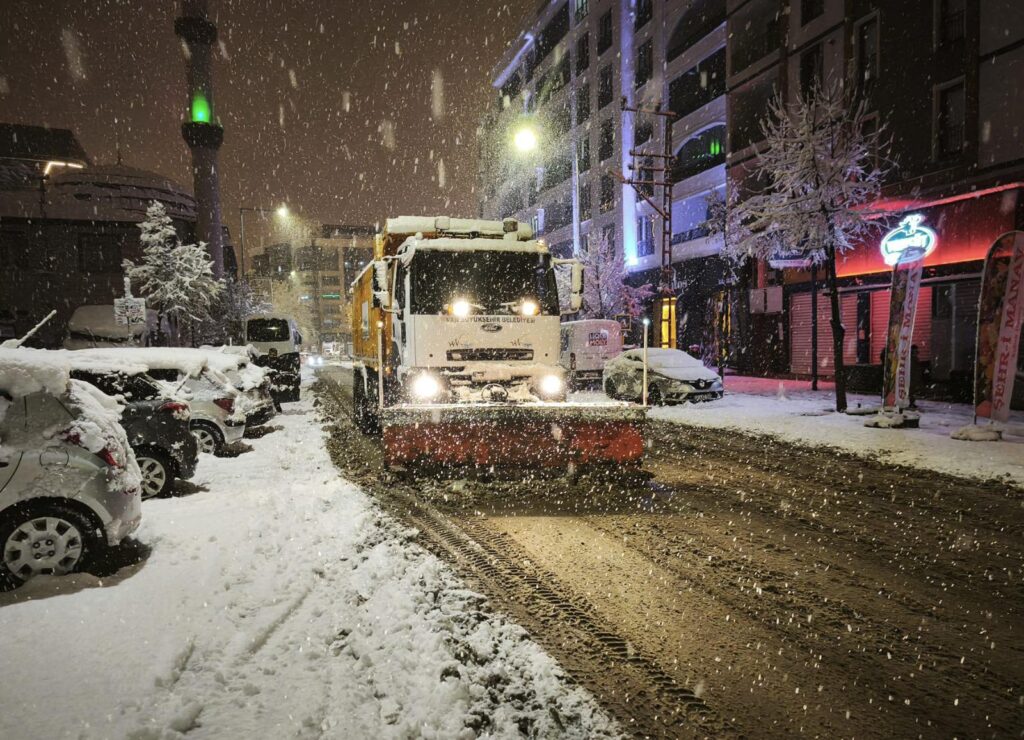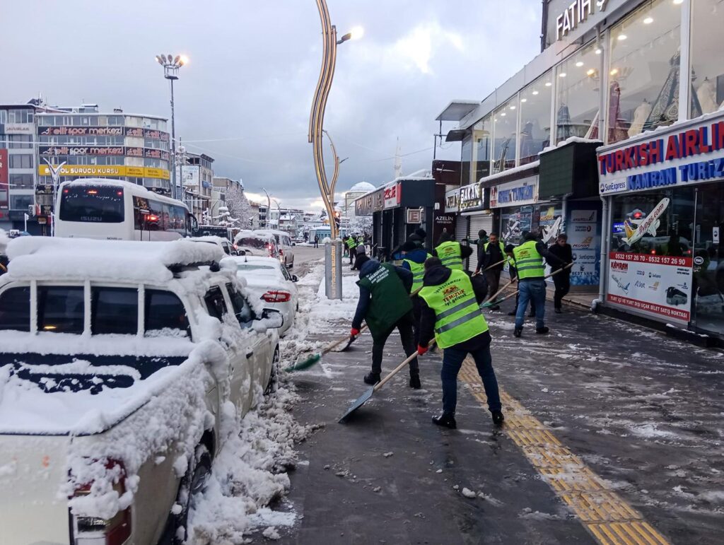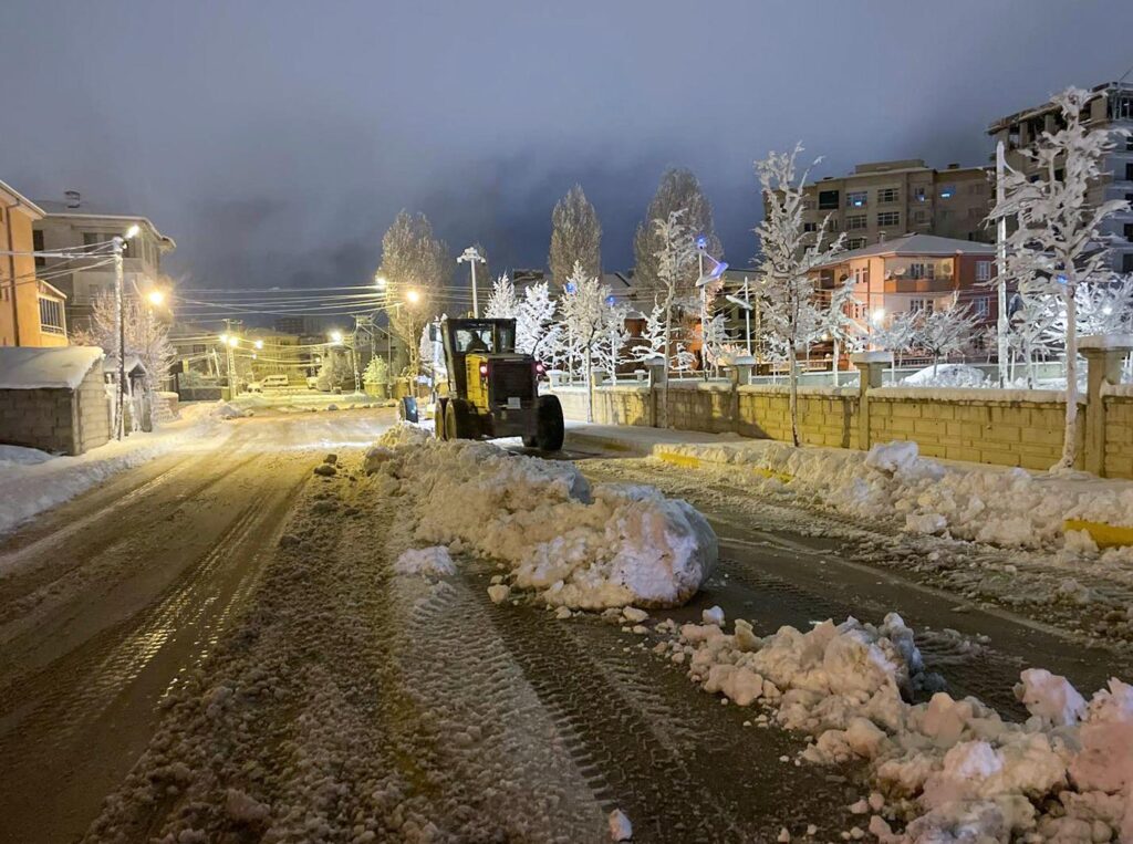 Kent genelinde 270 araç ve 618 personel ile yürütülen çalışmalarda ekipler, gece boyu küreme tuzlama kaldırım temizliği çalışması yürütürken, sabahın ilk ışıkları ile birlikte kapalı köy yolarını açma çalışması başlattı.