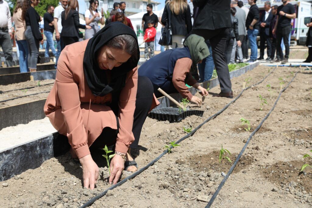 Açılıştan sonra eşbaşkanlar, annelerimiz ve katılımcılarla beraber sebze ve meyve fidelerinin ekimini yaptı.