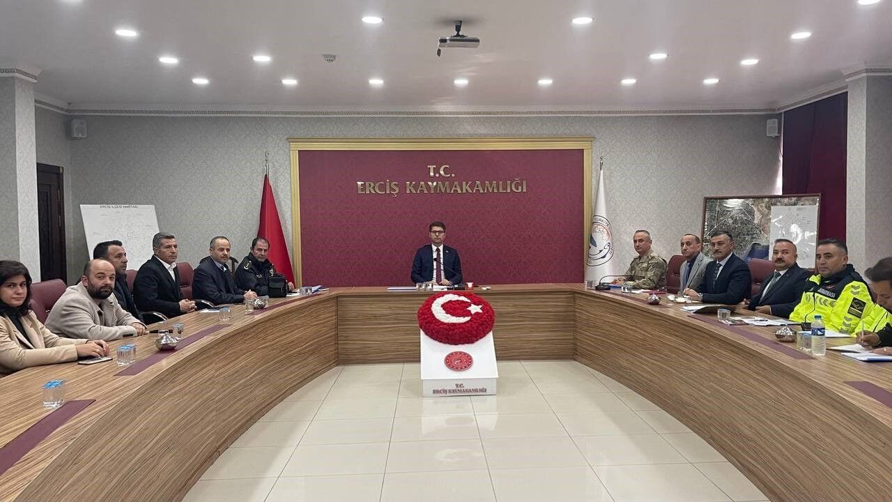 Kaymakamlık toplantı salonunda gerçekleştirilen toplantıya; Erciş Kaymakamı Murat Karaloğlu, İlçe Emniyet Müdürü Süleyman Trak, İlçe Jandarma Komutanı Jandarma Yarbay Murat Geniş, Erciş Belediye Başkan Yardımcısı ve ilgili birim sorumluları katıldı.