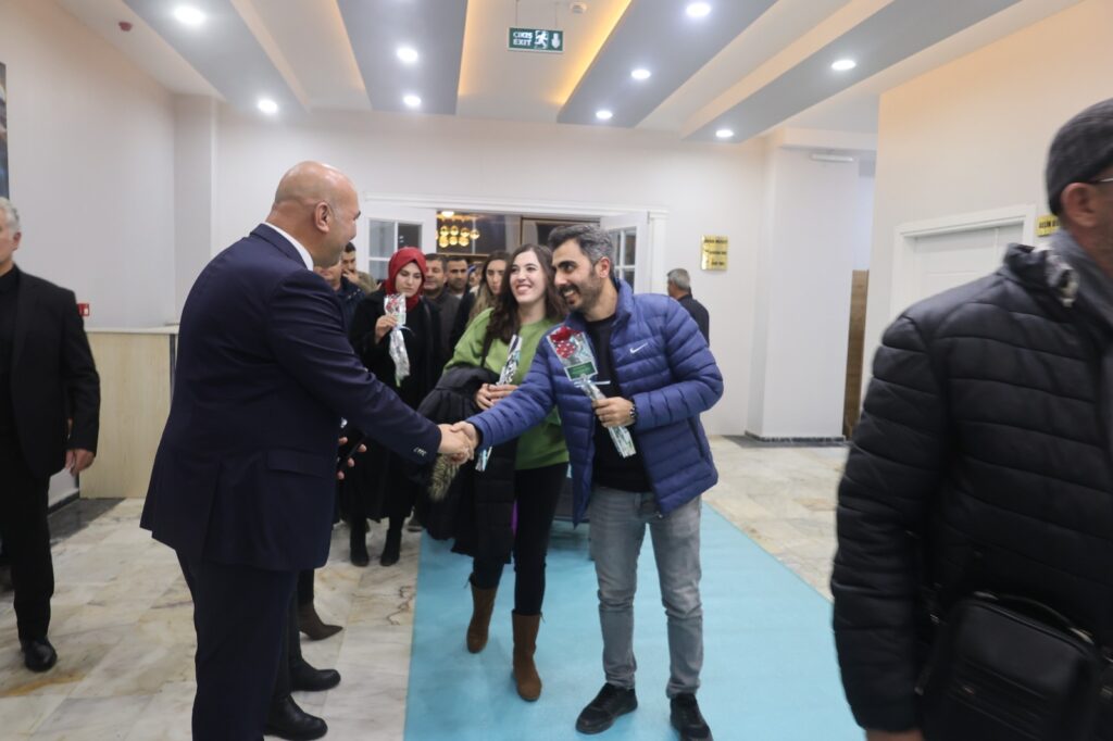 Konserin ardından İl Müdürü Nurettin Aras, öğretmenleri yemek salonuna çiçeklerle ağırladı.