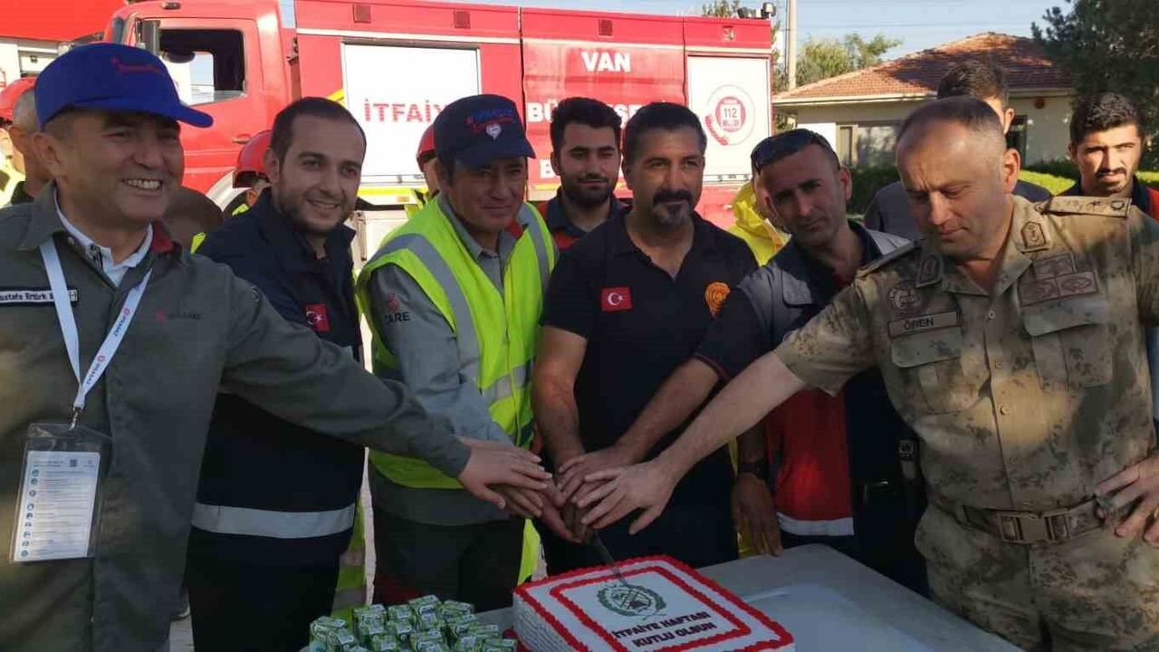 Yapılan tatbikatının ardından İl Jandarma Komutanlığı ve AFAD personelleri ile dolum istasyonu personelleri tarafından itfaiyecilere, 25 Eylül-1 Ekim tarihlerini kapsayan İtfaiyeciler Haftası nedeniyle pasta ikramında bulunuldu.