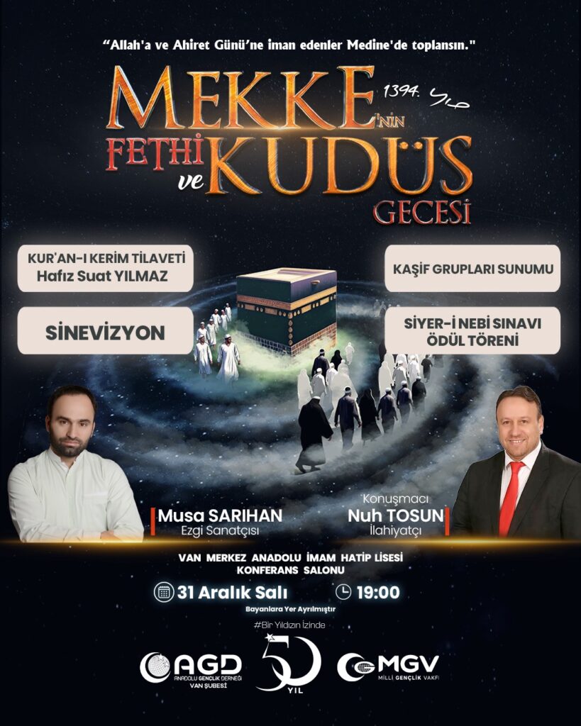 Etkinlikte ezgi sanatçısı Musa Sarıhan, ilahi eserleriyle geceye renk katacak. Aynı zamanda ilahiyatçı Nuh Tosun, konuşmasıyla katılımcılara hitap edecek.