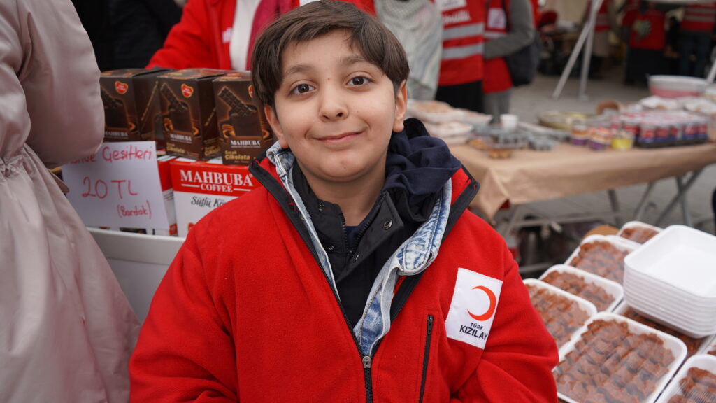 Kermeste görevli küçük gönüllülerden Ömer Ayaz Bezci, sözleriyle hem duygulandırdı hem de Gazze’deki dramı bir kez daha hatırlattı.