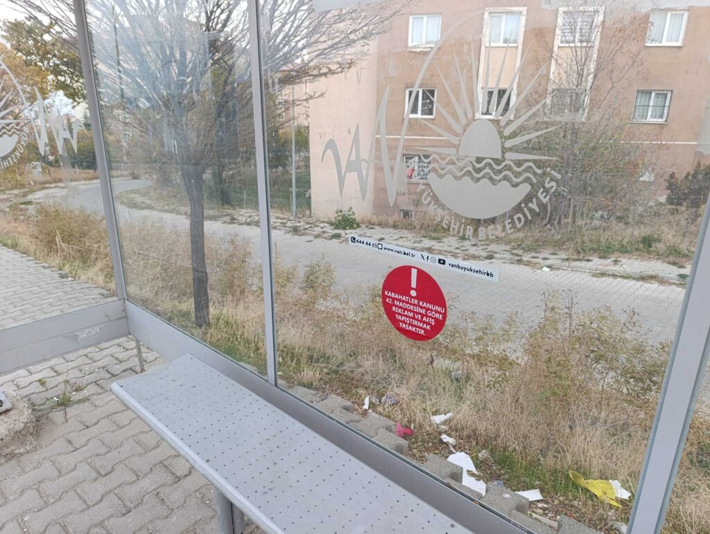Van’da belediye ekipleri tarafından kent genelindeki otobüs duraklarında kapsamlı bir temizlik çalışması gerçekleştirildi. Ekipler, durakları uzun süredir kirleten çöp, afiş, ilan ve yapıştırıcı kalıntılarını tek tek temizledi. Ayrıca, duraklara “Kabahatler Kanunu gereği otobüs duraklarına afiş, pankart ve ilan asmak yasaktır” ibaresi bulunan uyarı yazıları da asıldı.