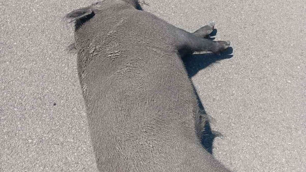 Van’ın Özalp karayolunda seyir halindeki otomobil, aniden yolan çıkan domuza çarptı