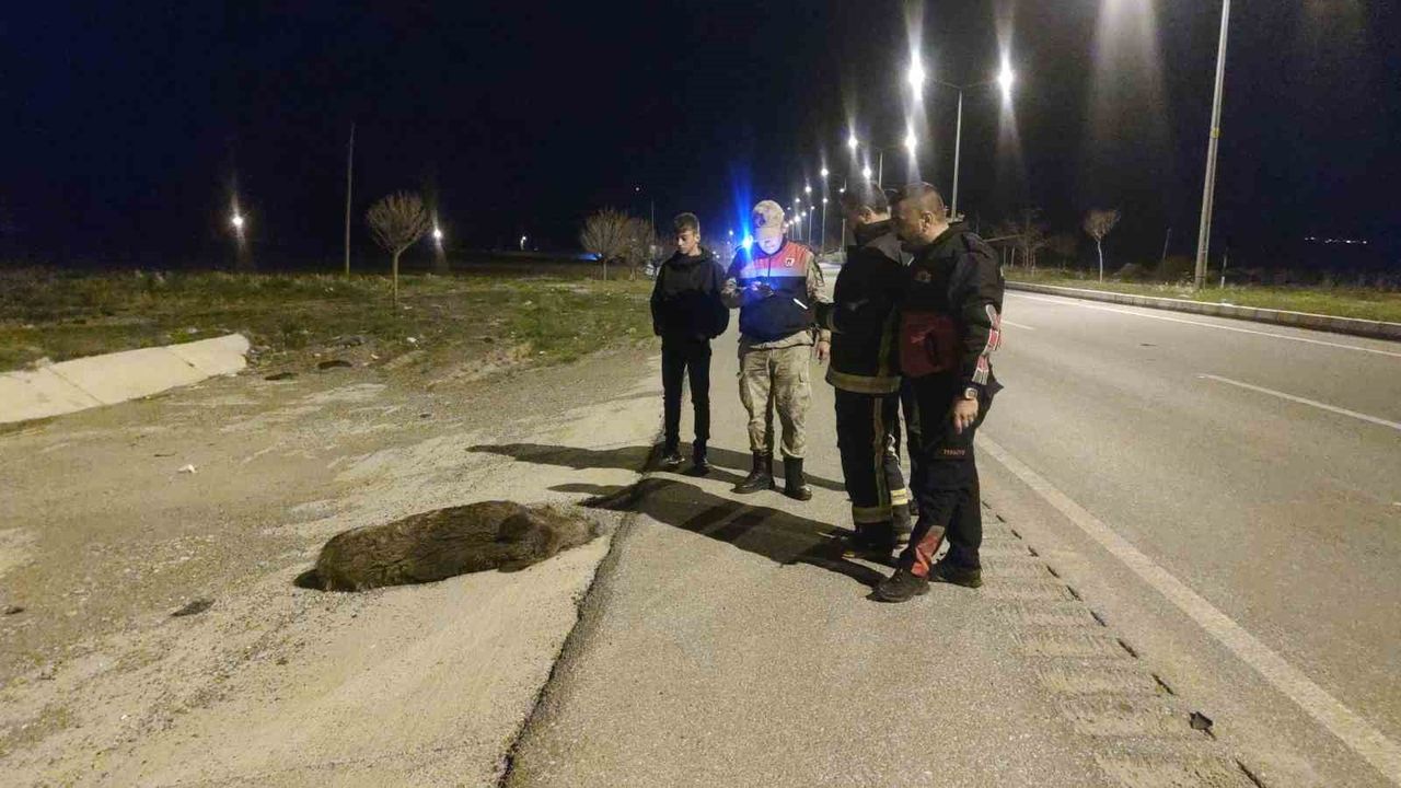 Van-Erciş kara yolunda otomobilin çarptığı domuz telef oldu.