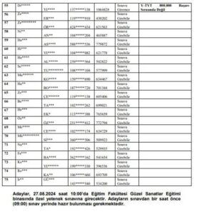 Yüzüncü Yıl Üniversitesi Eğitim Fakültesi ile Güzel Sanatlar Fakültesi’ndeki bölümlere öğrenci alımı yapabilmek için her yıl özel yetenek sınavı yapılıyor. Bu yılda bu sınava girmeye hak kazanan öğrencilerin isimleri belli oldu. Van YYÜ trafından sınava girmeye hak kazanan öğrencilerin isim listeleri paylaşıldı. İşte o liste;