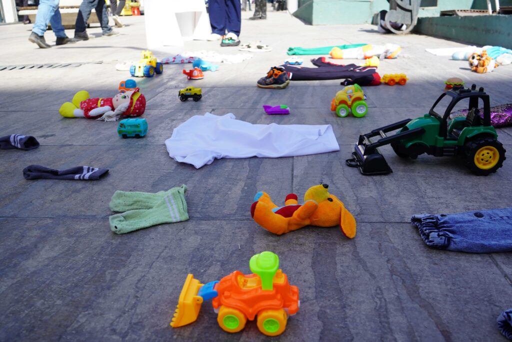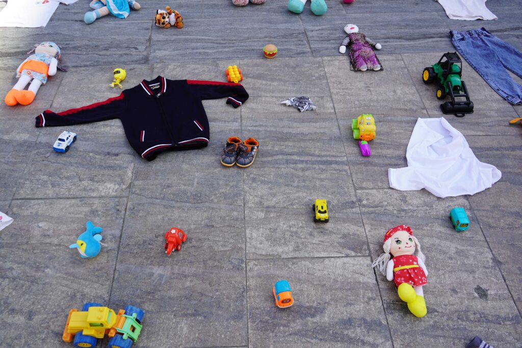 Etkinliğin amacı, 7 Ekim 2023’ten bu yana İsrail tarafından sürdürülen saldırılarda katledilen binlerce Filistinli çocuğun sessiz çığlığına dikkat çekmek ve kamuoyunda farkındalık oluşturmaktı. Sokağa bırakılan oyuncaklar ve kıyafetler, savaşın en masum kurbanları olan çocukların dramını bir kez daha gözler önüne serdi.