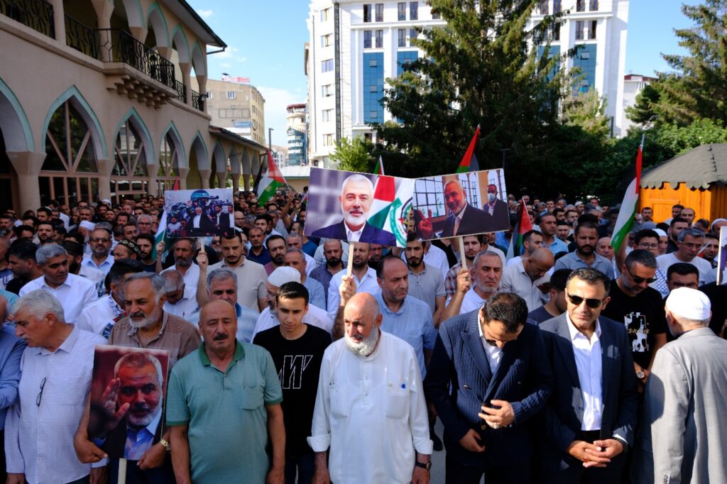 Hamas Siyasi Büro Başkanı İsmail Haniye'nin Tahran'da uğradığı suikast sonucu hayatını kaybetti. Van Filistin’e Destek Platformu üyeleri ise ikindi namazı sonrası Hazreti Ömer Camii avlusunda bir araya geldi. Burada kılınan cenaze namazının ardından platform adına basın açıklamasını okuyan Mehmet Garip Cesur, İsmail Heniye'nin Şeyh Ahmet Yasin, Abdülaziz el- Rantisi’nin aziz davasındaki izlerini takip ederek şehitler kervanına katıldığını belirtti. Cesur, "İsmail Heniye, 3 oğlunu 4 torununun şehadet haberini alınca, davasını çelik bir iradeye, acısını sabra dönüştüren 'Benim çocuklarımın kanı Filistin halkının kanından daha değerli değildir Gazze’deki tüm çocuklar benim çocuklarımdır' diyen, iman iddiasını mücadele, özgür Kudüs aşkını şehadetiyle ispat eden Fillisindeki binlerce mücahitten biriydi. 'Allah yolunda öldürülenlere ‘ölüler’ demeyin! Onlar diridirler' diyor ya Rabbimiz, bizler de işittik ve itaat ettik diyoruz. Onlar mücadele ruhunu diri tutan, davalarını direnişe dönüştüren, nesillere çağlara güzel bir çağrı ve örneklik bırakan önderlerdir. 'Madem ölüm tek bir defa gelecek o da neden Allah için olmasın' inancıyla hakka yürüyen bu yiğidimizin, davasının hak olduğuna nasıl iman ediyorsak, onun yasını tutarken de yaşarken ki şahitliğine tanıklık ediyor, Rabbimizin şehadetini kabul etmesini niyaz ediyoruz. Tüm Filistin halkının başı sağ olsun, tüm Müslümanların başı sağ olsun. Artık tam anlamıyla sözün bittiği yerdeyiz" dedi.