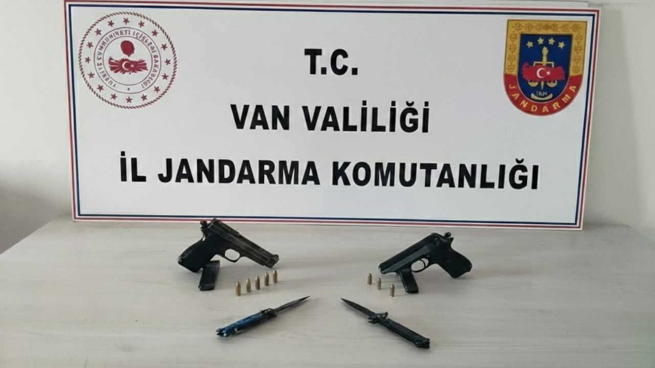 İl Jandarma Komutanlığı Kaçakçılık ve Organize Suçlarla Mücadele Şube Müdürlüğü tarafından Erciş ilçesi Çelebibağı Mahallesi’nde ikamet eden M.K. (39) isimli şahsa ait ev ve eklentilerinde arama yapıldığı belirtilen açıklamada, "Yürütülen aramada ise 1 adet berette marka 9 mm ruhsatsız tabanca, 1 adet 7.65 mm ruhsatsız tabanca, 2 adet tabanca şarjörü, 3 adet 7.65 mm fişek, 5) adet 9 mm fişek ve 2 adet bıçak ele geçirilerek muhafaza altına alındı. Şüpheli M.K. (39) isimli şahıs hakkında 6136 S.K. kanuna göre adli işlemler başlatılarak gözaltına alınmıştır" ifadeleri kullanıldı.